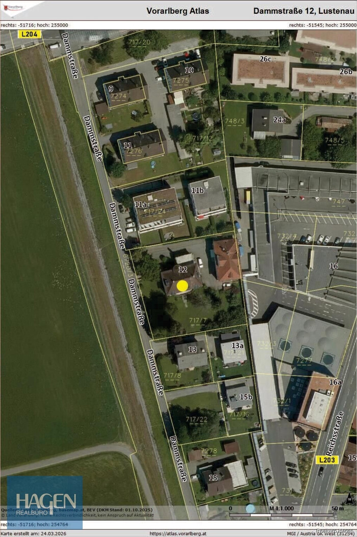 An der Dammstraße gelegen, befindet sich die Liegenschaft in der Nähe zum Gasthaus/Hotel Krönele in Lustenau. Die Zufahrt ist sehr gut zu finden und in nächster Nähe zur Schweizer Grenze.