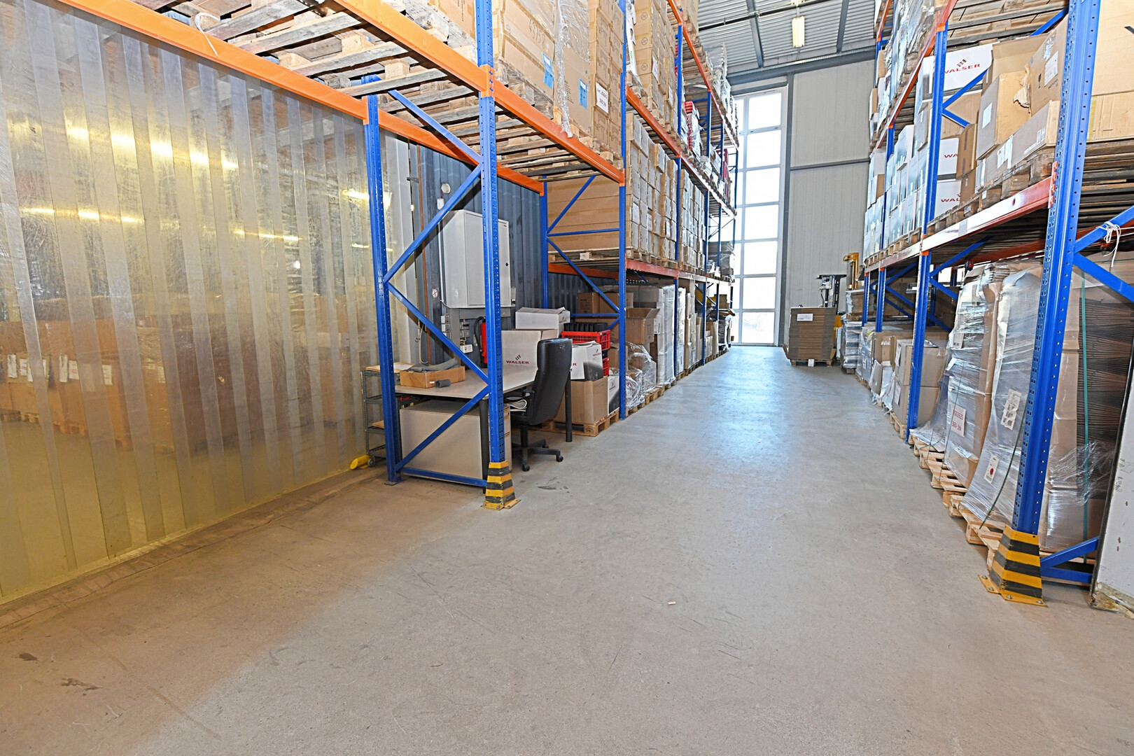 Dieses moderne Lager bietet optimale Voraussetzungen für Logistik- und Lagerzwecke. Die Halle verfügt über eine Gesamtfläche von ca. 500 m² und eine Hallenhöhe von rund 7,5 m, wodurch eine effiziente Nutzung des Raums möglich ist. Insgesamt stehen ca. 730 Palettenstellplätze zur Verfügung.
