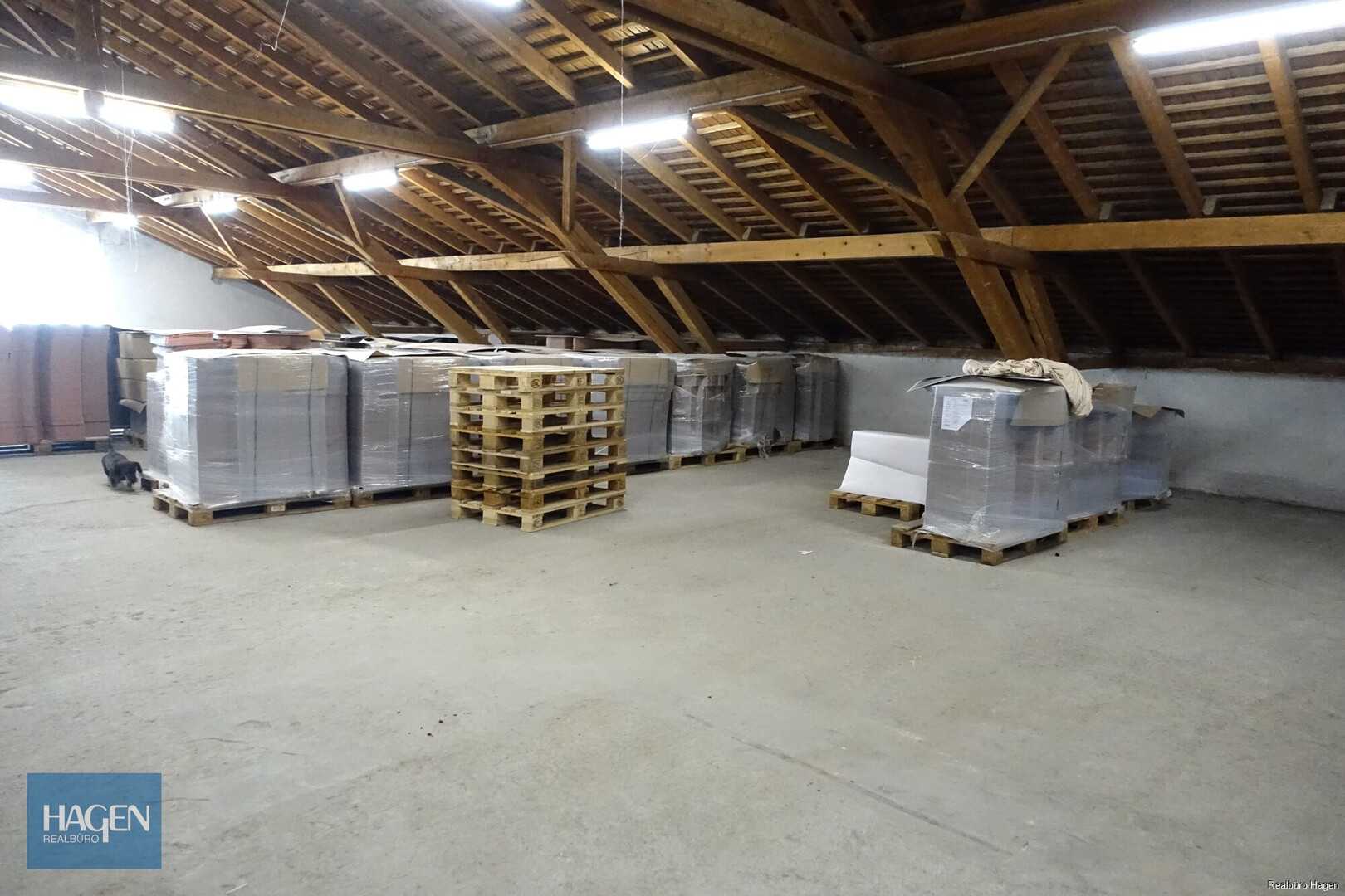 Zur Vermietung stehen rund 416 m² Produktions- bzw. Bürofläche im Obergeschoss sowie zusätzlich ca. 446 m² Lagerfläche im Dachgeschoss. Die beiden Ebenen sind durch einen Lastenlift optimal erschlossen – ideal für Betriebe mit Lager- und Bürobedarf an einem Standort.