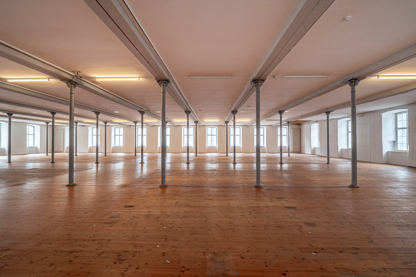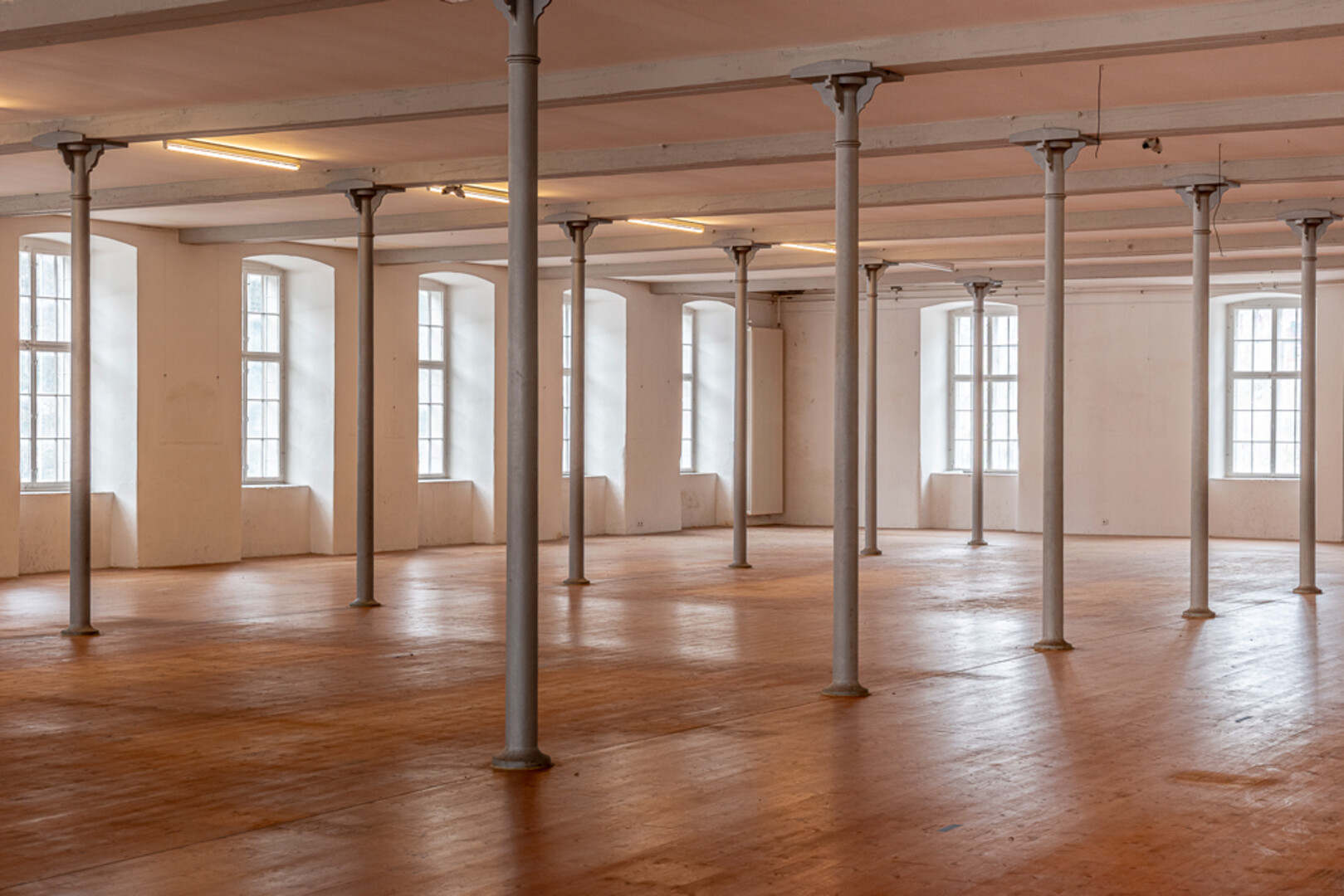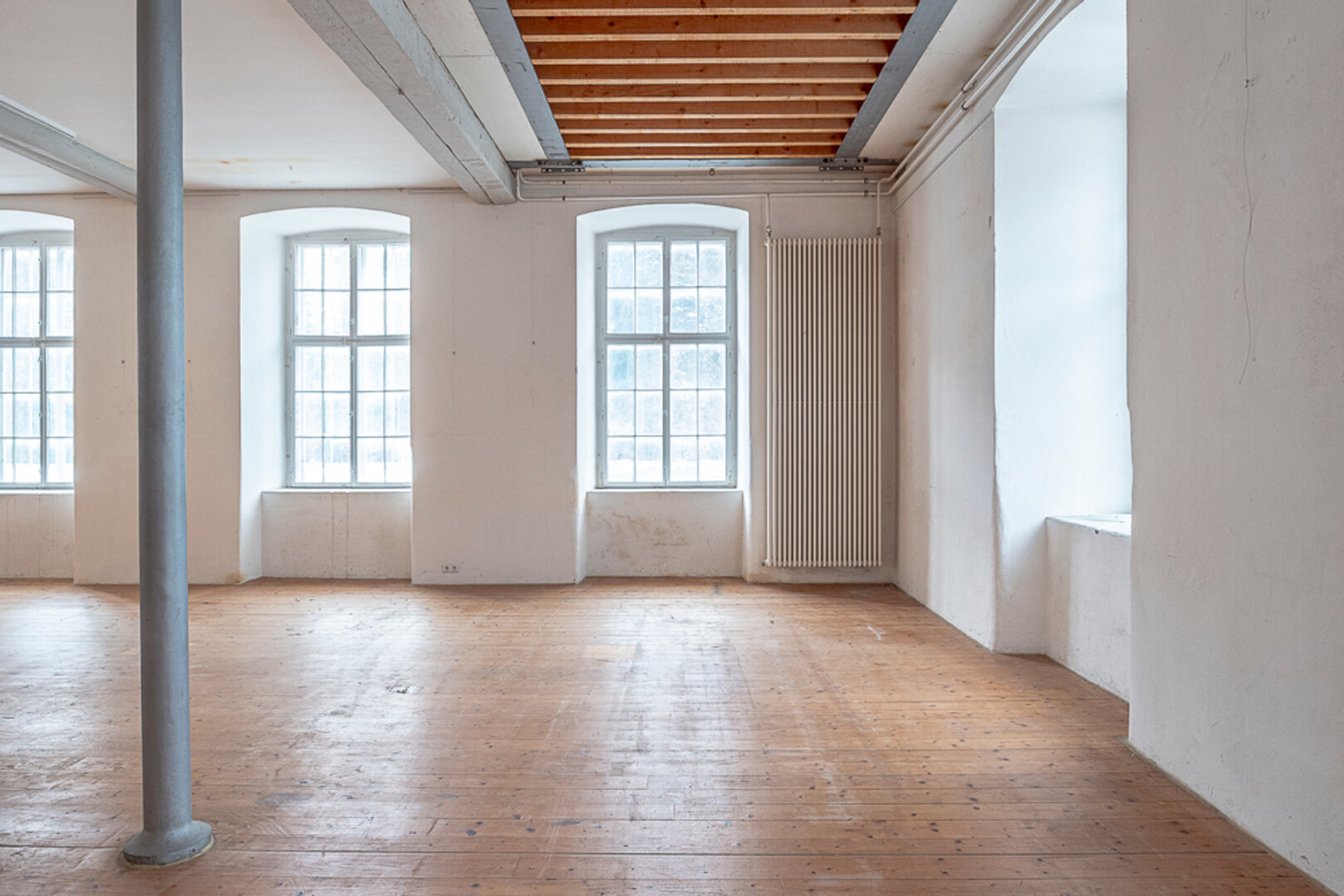 Die Immobilie erstreckt sich über drei Hauptgeschosse und bietet zusätzlich einen bedingt nutzbaren Dachboden von ca. 1.000 m². Die großzügigen Hallen und Werkstätten bieten ideale Bedingungen für Produktions-, Lager- oder Ausstellungsflächen. Attraktive Raumhöhen und verschiedene Bodenbeläge ermöglichen eine vielseitige Anpassung an Ihre individuellen Bedürfnisse.