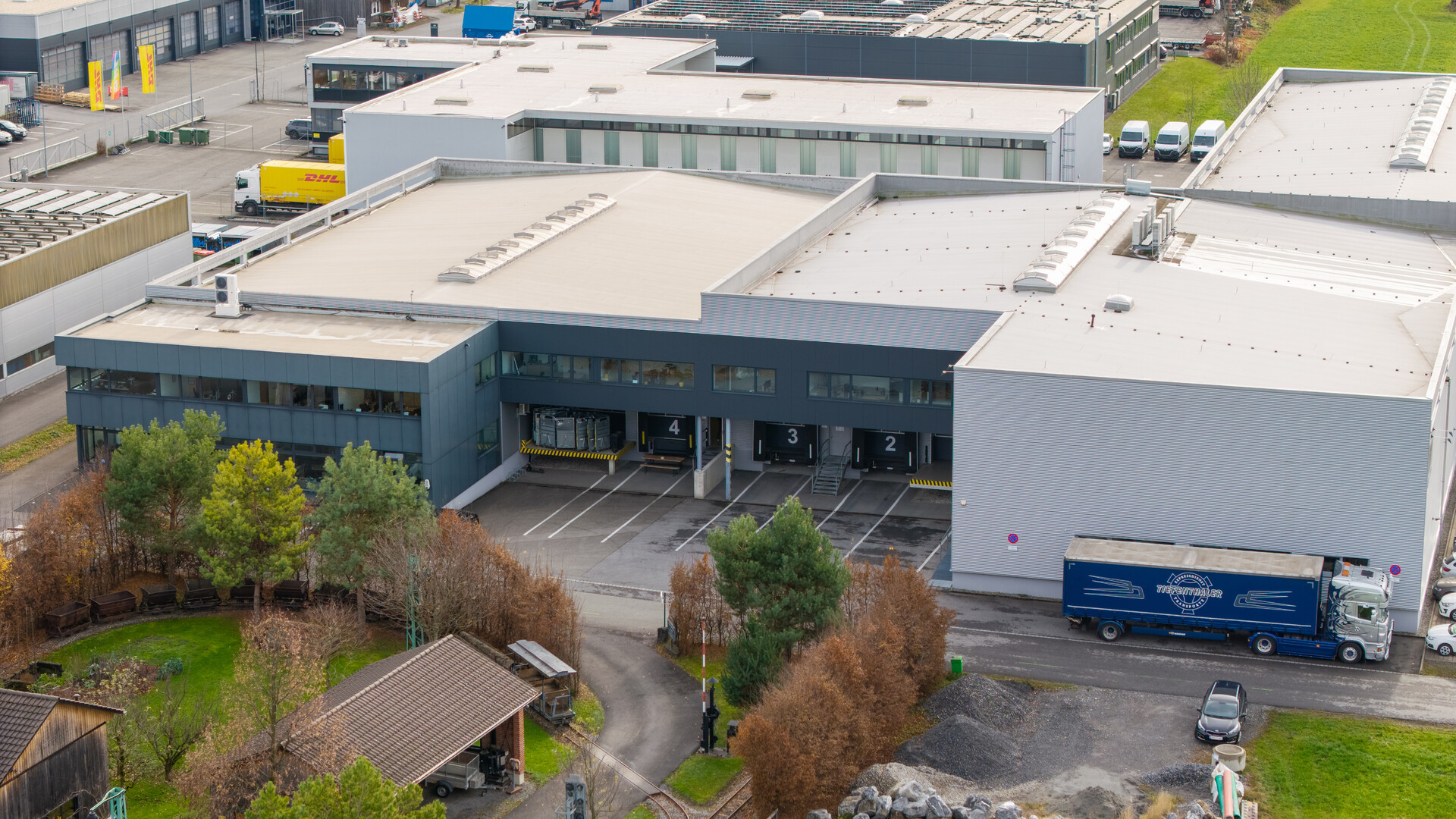 - Anlieferung: 7 Hallentore, davon 5 überdachte Laderampen (2 mit Vorsatzsockel)