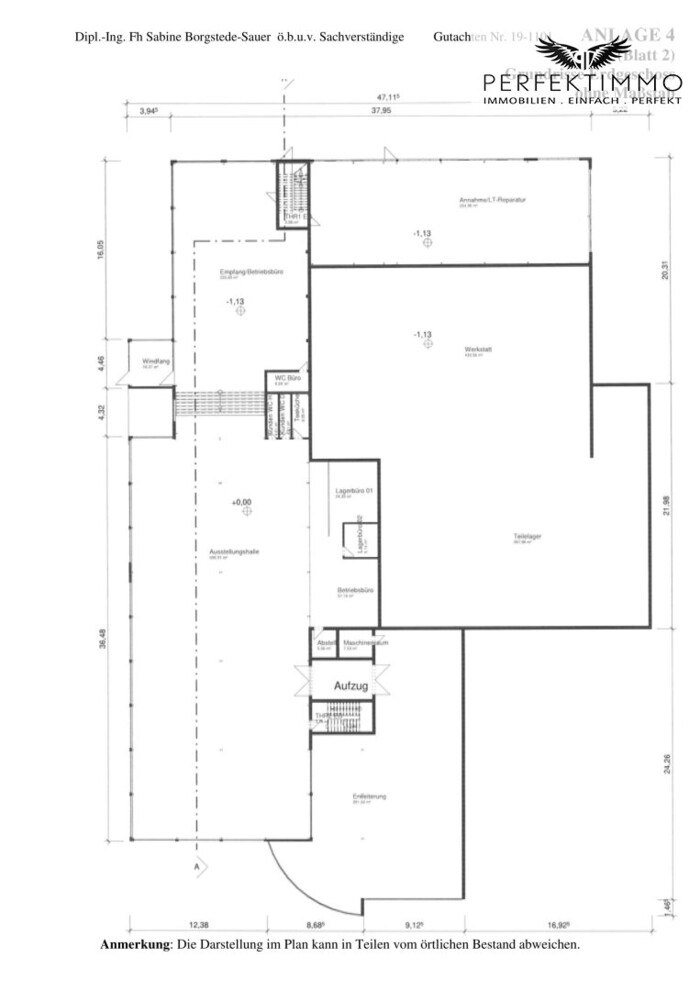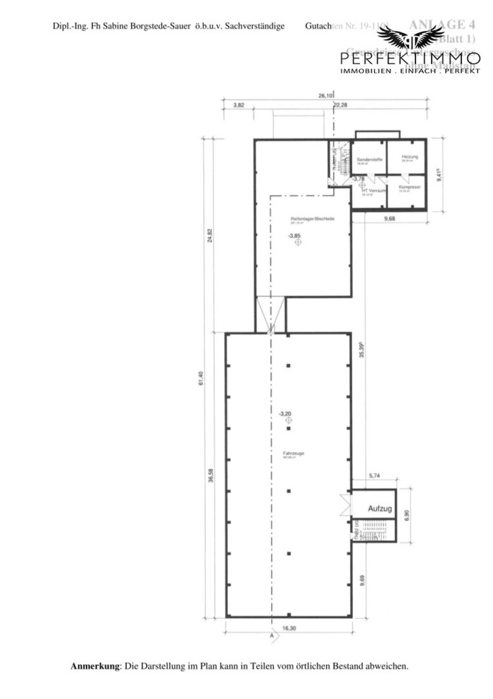 Es wird empfohlen, die Angaben eigenverantwortlich und gegebenenfalls unter Hinzuziehung technischer, wirtschaftlicher und juristischer Experten zu überprüfen, bevor Vereinbarungen unterzeichnet werden. Eine Vollmacht für entsprechende Überprüfungen wird bei Kaufinteresse auf Antrag des Kaufinteressenten durch die Eigentümerin erteilt.