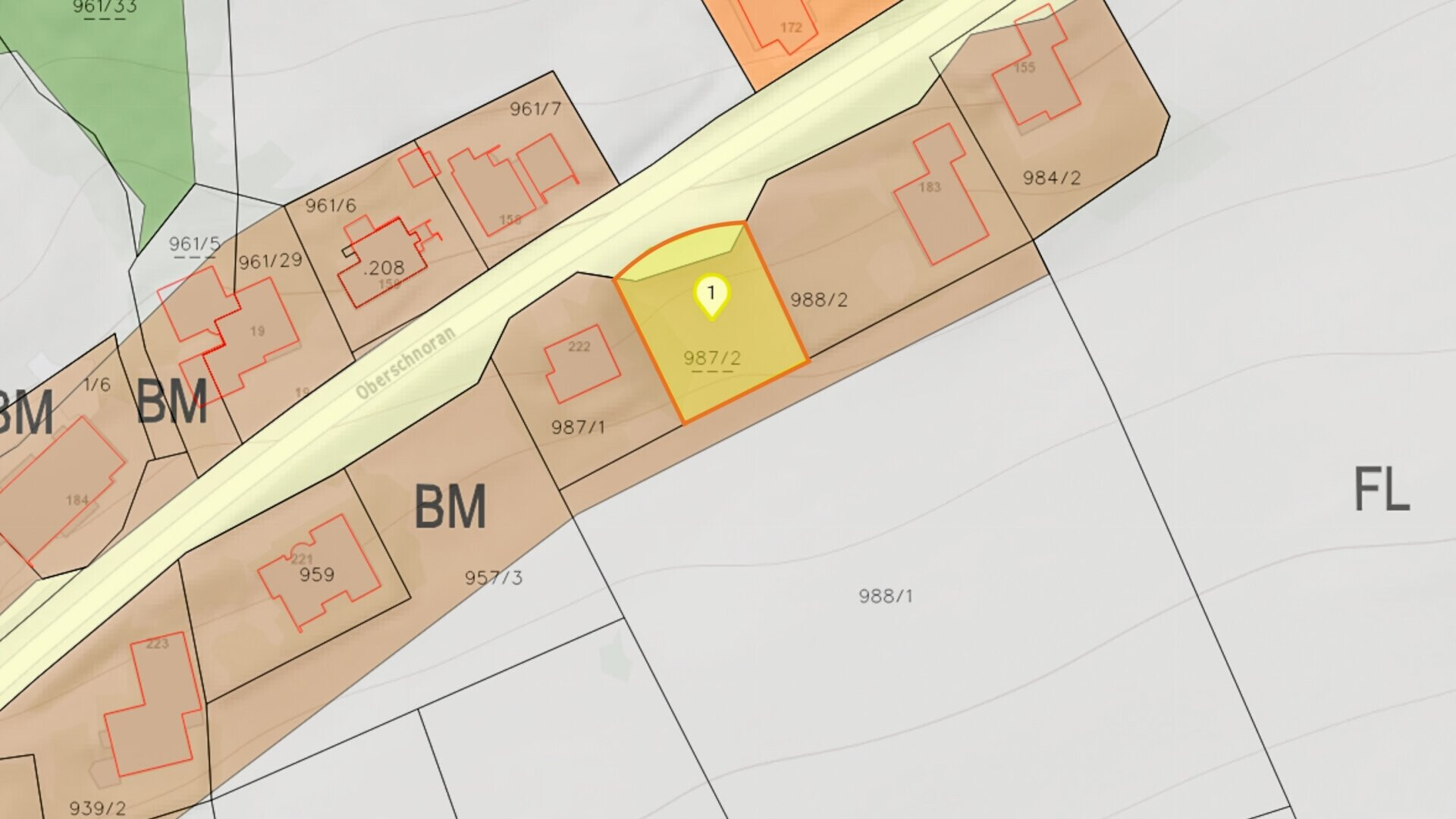 Das Grundstück ist als Baufläche Mischgebiet (BM) gewidmet und bietet damit flexible Nutzungsmöglichkeiten, ideal für die Kombination von Wohnen und Arbeiten.