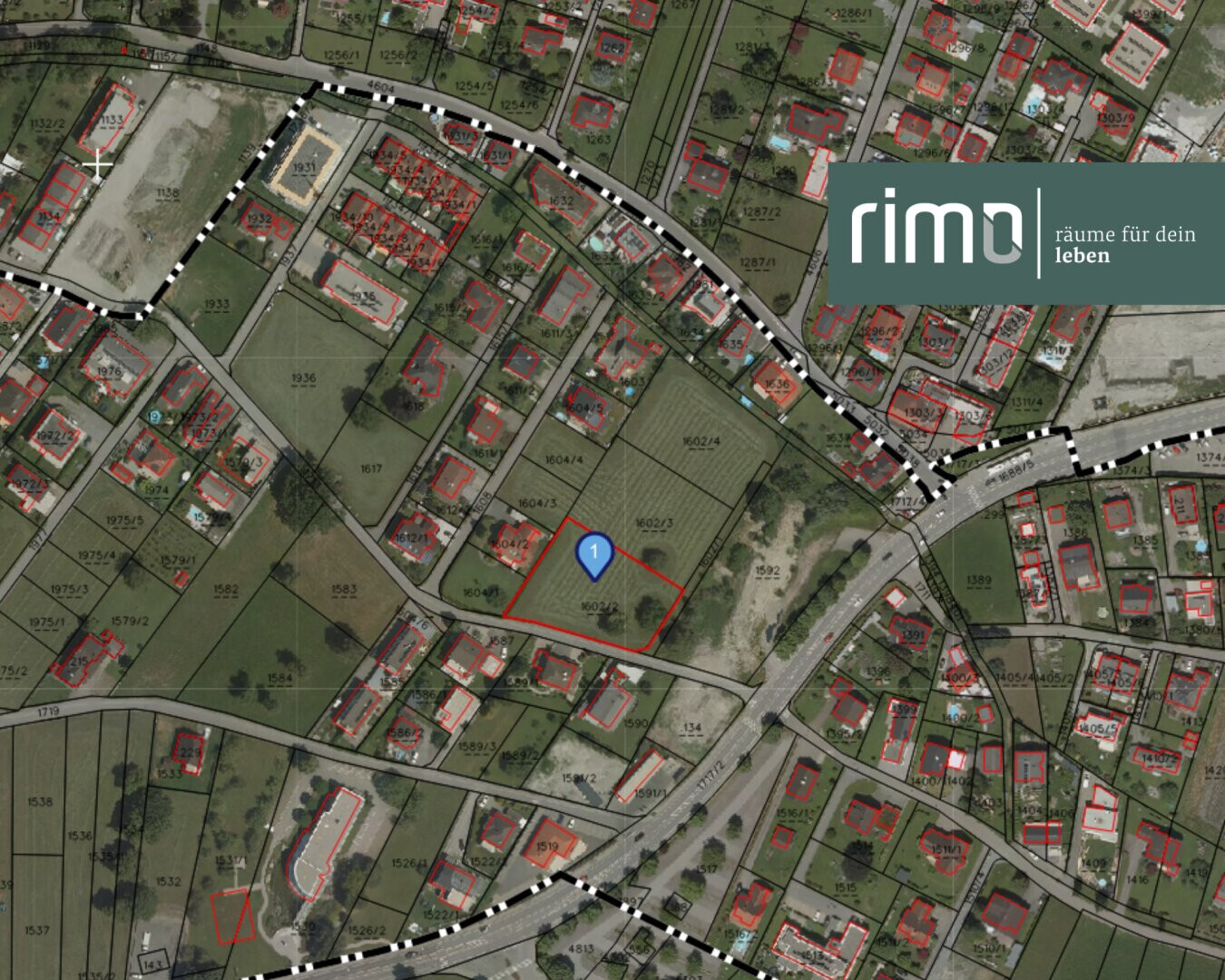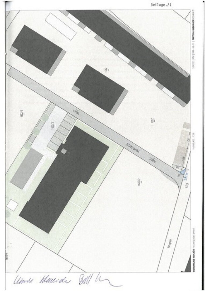- GST-Nr.: 1602/1 --> Größe = 376 m² je ein Drittel (ca. 125 m²) als Zufahrt im Kaufpreis inkludiert