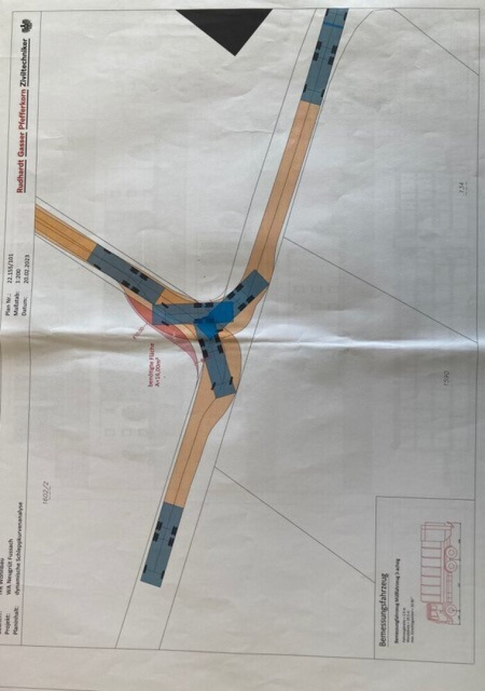 Wir weisen auf eine Dienstbarkeit von ca. 16 m², ausschließlich dem Wenderadius des Müllwagens im unteren, rechten Eck des Grundstücks hin (siehe Plan). Bei Interesse reichen wir Ihnen gerne weitere Unterlagen diesbezüglich zu.