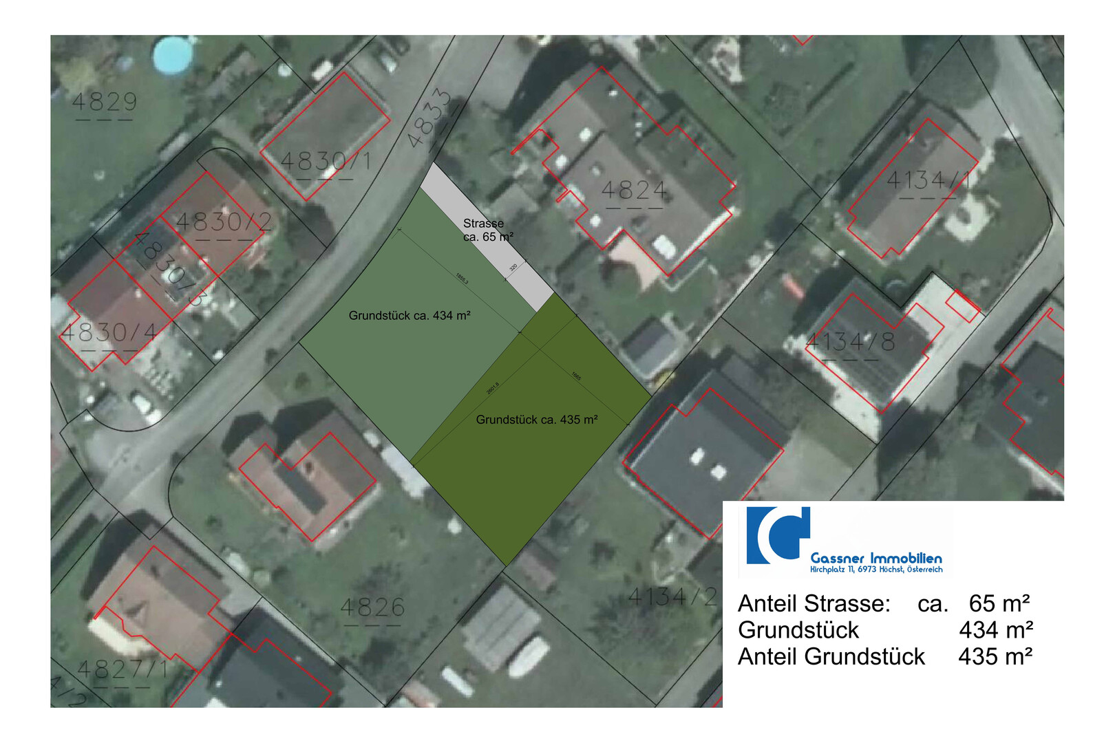 Bei der Liegenschaft handelt es sich um ein großzügiges Grundstück in sonniger Wohnlage von Höchst, welches im Zuge der Abwicklung in zwei Baugrundstücke mit einem Ausmaß von je etwa 435 m² geteilt wird.