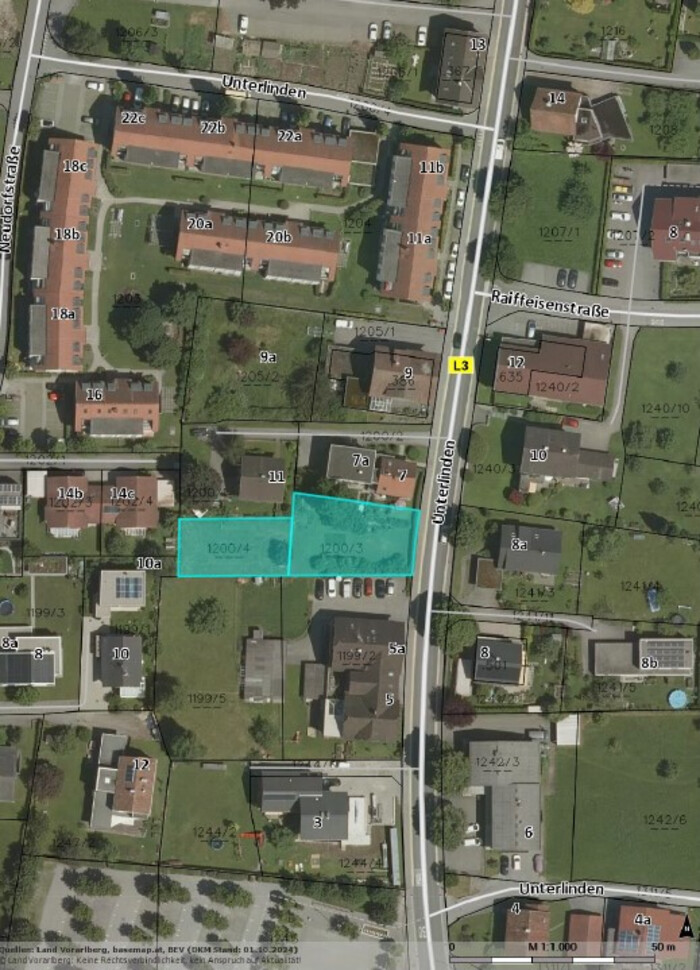 - Grundstück 1200/3: ca. 544 m² (lt. Grundbuch)