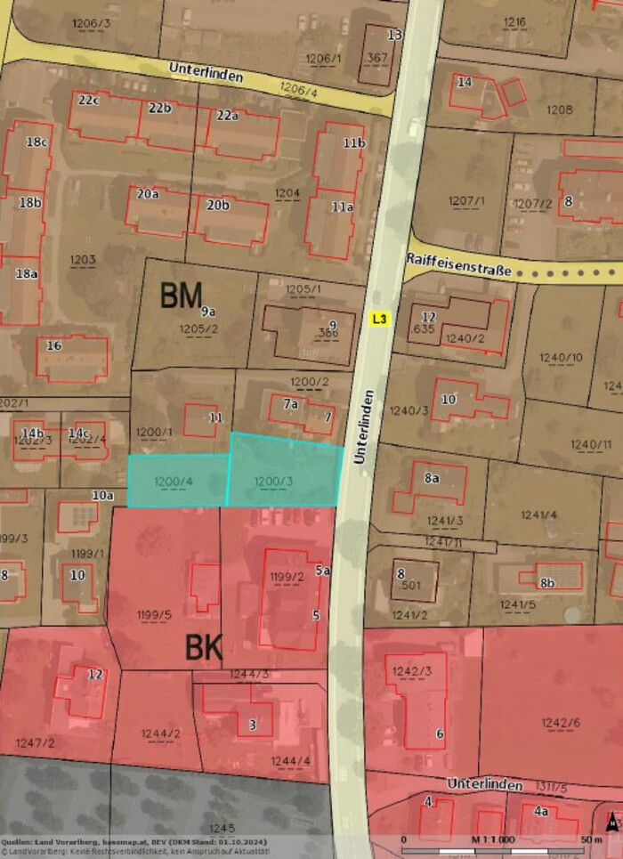 - Grundstück 1200/4: ca. 378 m² (lt. Grundbuch)