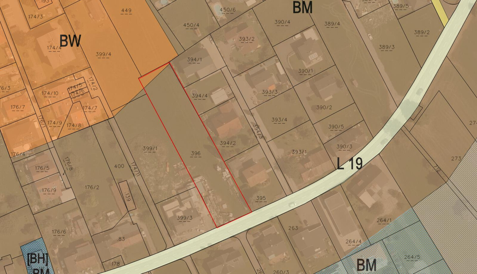 Das Grundstück mit der Nr. 396 umfasst eine Gesamtfläche von rund 2.096 m² und ist als Baufläche–Mischgebiet gewidmet.