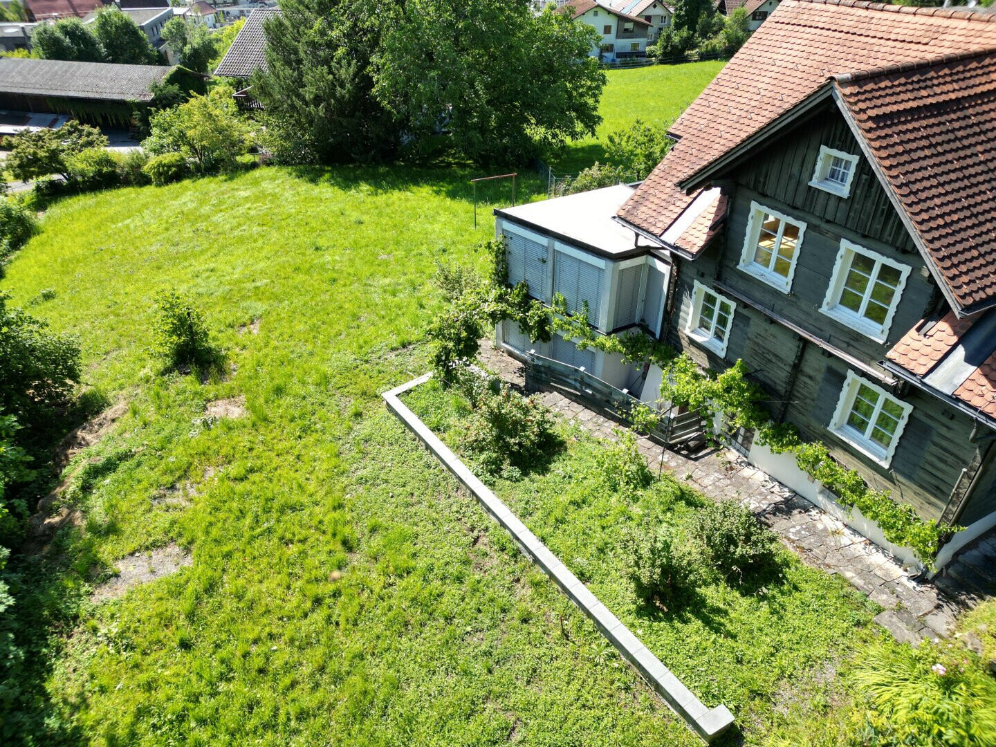 Das Grundstück befindet sich in leichter Hanglage und ist vollständig erschlossen (Wasser, Kanal, Strom, Zufahrt vorhanden). Ein Altbestand ist derzeit noch auf dem Grundstück vorhanden und kann je nach Planung rückgebaut oder saniert werden.