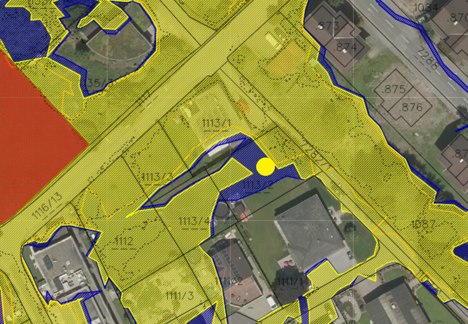 ACHTUNG: Dienstbarkeit des Gehens und Fahrens im nordwestlichen Teil für Grundstück