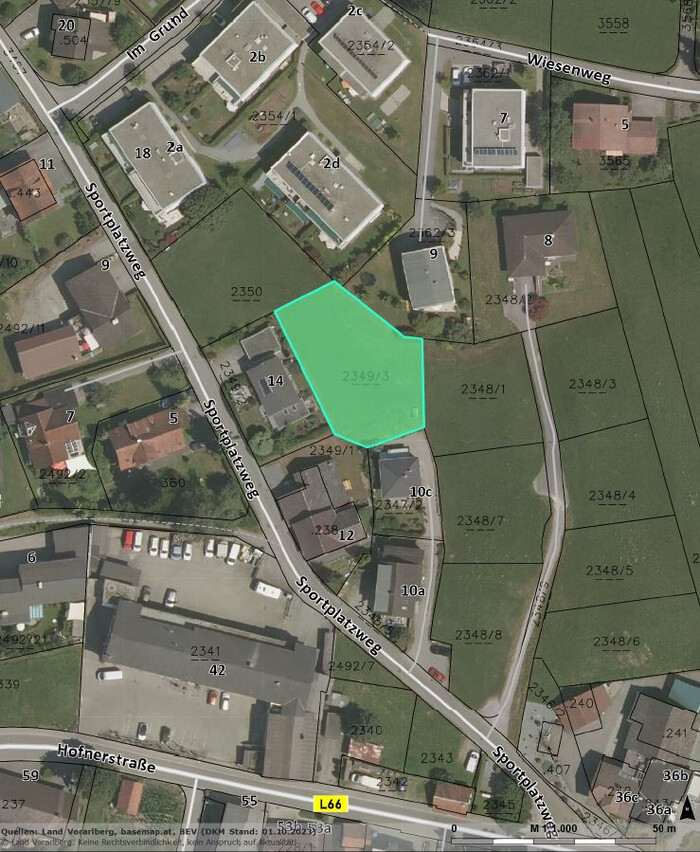 Laut der Verordnung der Gemeindevertretung von Göfis über das Maß der baulichen Nutzung vom 21.03.2013 befindet sich das Grundstück im "Gebiet mit zweigeschossigem Grundtypus in Hanglage (2 GH)". In den Gebieten mit einem zweigeschossigen Grundtypus in Hanglage sind zwei Obergeschosse (OG) sowie ein Untergeschoss (UG) oder ein Dachgeschoss (DG) erlaubt.
