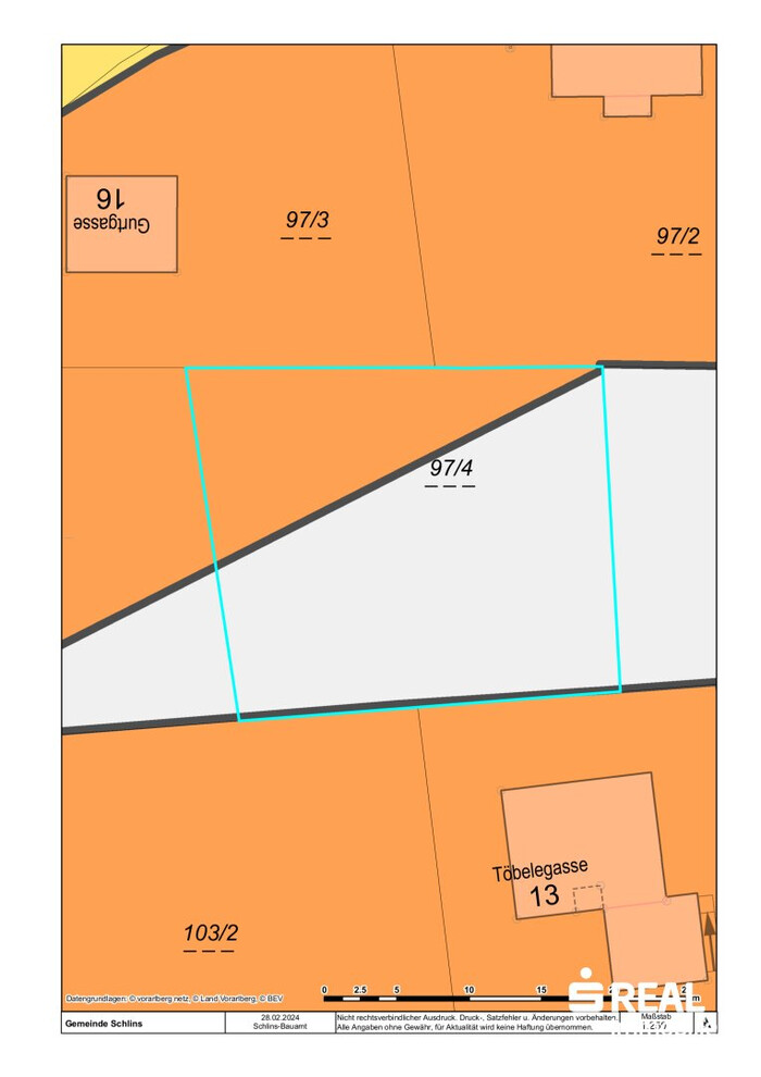 Die Gemeinde Schlins beabsichtigt, die nicht gewidmete Teilfläche als Baufläche-Wohngebiet zu widmen. Gemäß REK Schlins liegt die betroffene Parzelle innerhalb dem festgelegten Siedlungsrand. (Baugebiet BW6 - steile Hanglage von oben erschlossen).