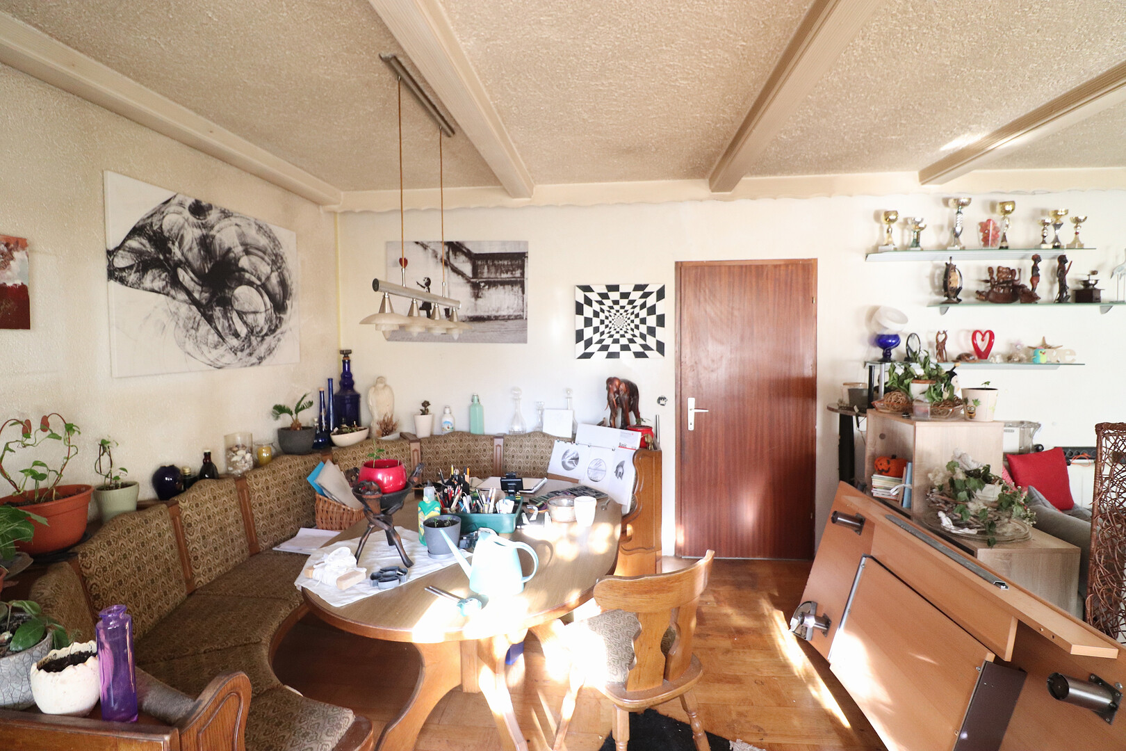 Das Einfamilienhaus (Bungalow) mit Potential (Baujahr 1971) befindet sich in einem sanierungsbedürften Zustand. Das Erdgeschoß verfügt über eine Nutzfläche von ca. 121 m², der Keller bietet ca. 110 m². Beheizt wird das Wohngebäude mittels Elektroheizung u/o 2 Holzeinzelöfen. Die hellen Räumlichkeiten mit optimalem Grundriss sind großzügig angelegt und bergen eine Reihe von Einrichtungsmöglichkeiten.