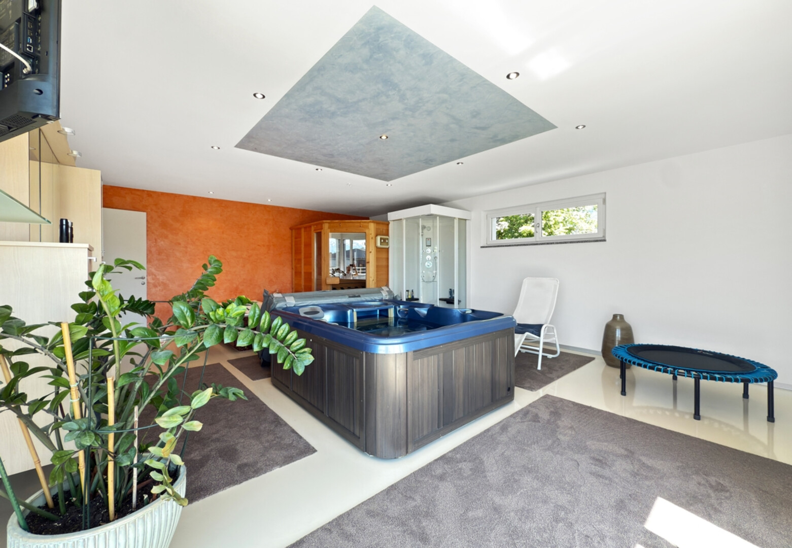 — Badezimmer mit Whirlpool, Dampfdusche, Sauna und direktem Terrassenzugang