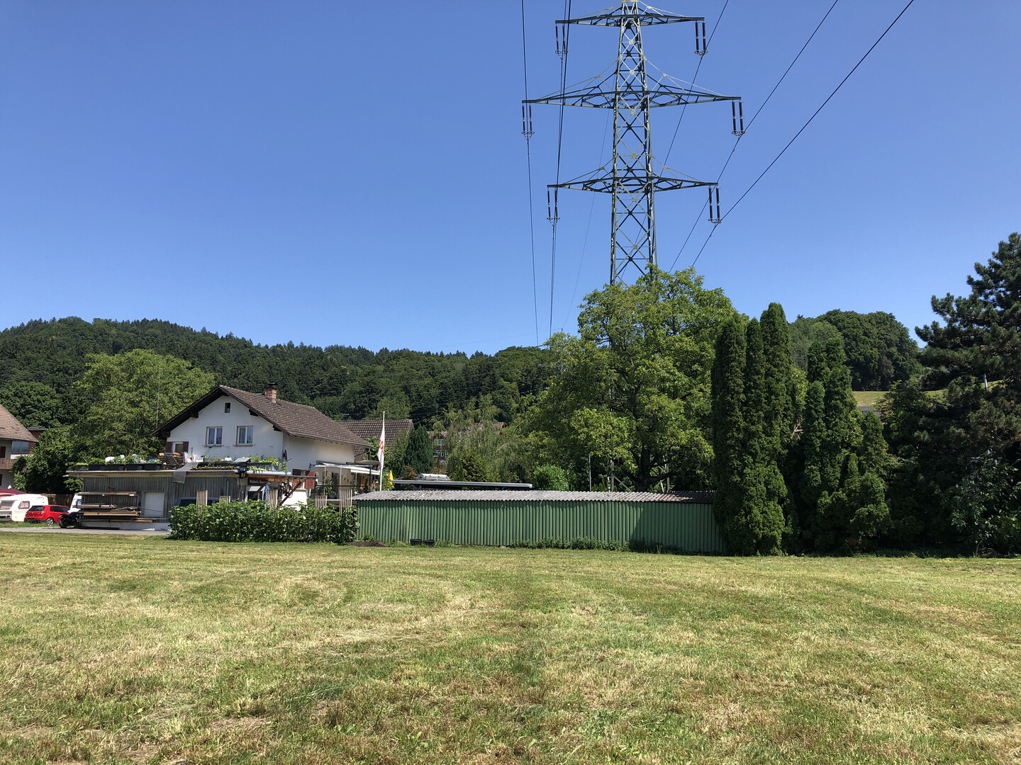 Da ein Teil des Grundstücks aufgrund der Hochspannungsleitung nicht klassisch bebaubar ist, ergibt sich insgesamt sehr viel Grundstücksfläche zu einem vergleichsweise günstigen Gesamtpreis.