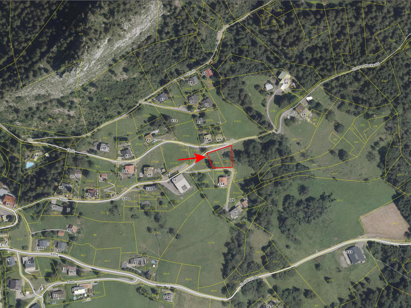 Das Grundstück befindet sich in der Region Ebnit, einem Ortsteil von Dornbirn in Vorarlberg, Österreich.