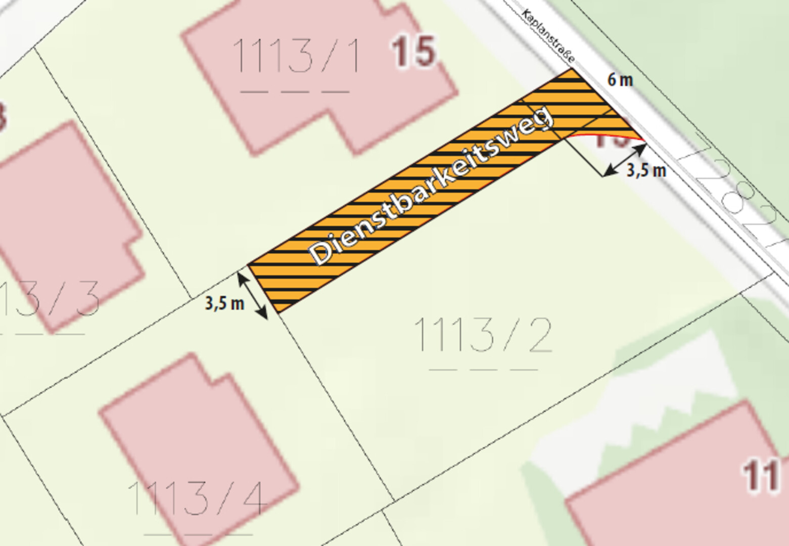 ACHTUNG: Dienstbarkeit des Gehens und Fahrens im nordwestlichen Teil für Grundstück