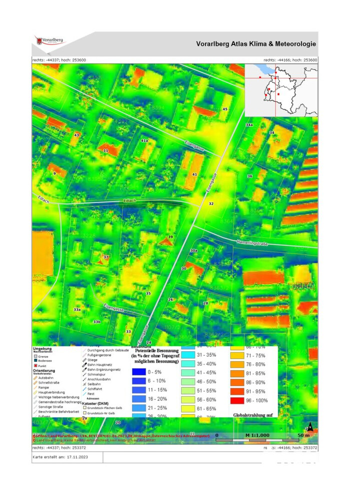 Die Baunutzungszahl wird zwischen 60 und 80 (so das Amt der Stadt Dornbirn) angegeben.