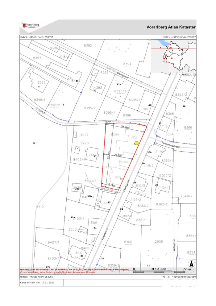DORNBIRN: Verkauft wird dieses große Grundstück mit ca. 1.832 m² Gesamtfläche in sehr zentraler Lage an der Eisengasse in Dornbirn.