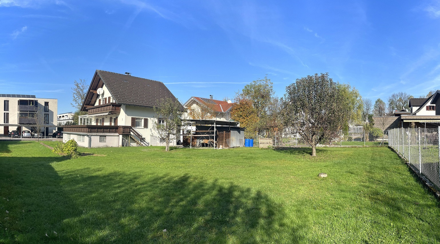 Durch die ideale Grundstücksform lässt sich das Grundstück gut in zwei Bauparzellen mit 455 m² und 523 m² (inkl. 83 m² Wegdienstbarkeitsfläche) teilen. Da die Vermessung noch nicht erfolgt ist, kann die Grundstückfläche aber noch verändert werden.