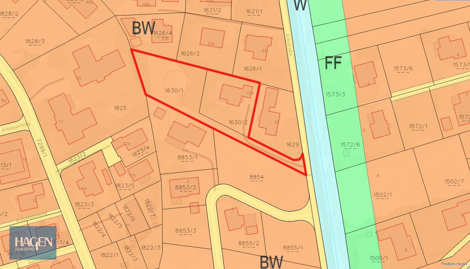 In einer ruhigen und sehr gefragten Lage von Hohenems, umgeben von gepflegten Wohnhäusern, befindet sich dieses großzügige und zusammenhängende Grundstück mit einer Fläche von ca. 1.973 m². Die Liegenschaft überzeugt durch ihre idyllische, naturnahe Umgebung und auch die Nähe zu Altach – ideal für Familien, Naturbegeisterte und alle, die Wert auf eine hohe Wohn- und Lebensqualität legen.