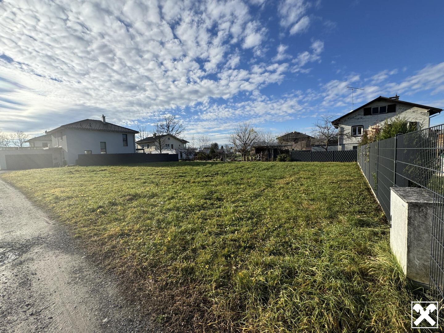 Das Grundstück liegt in einer Sackgasse, umgeben von Einfamilienhäusern und viel Grün. Perfekt für Familien.