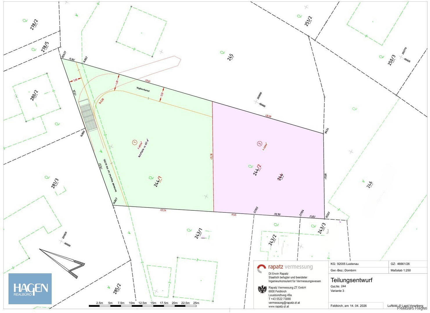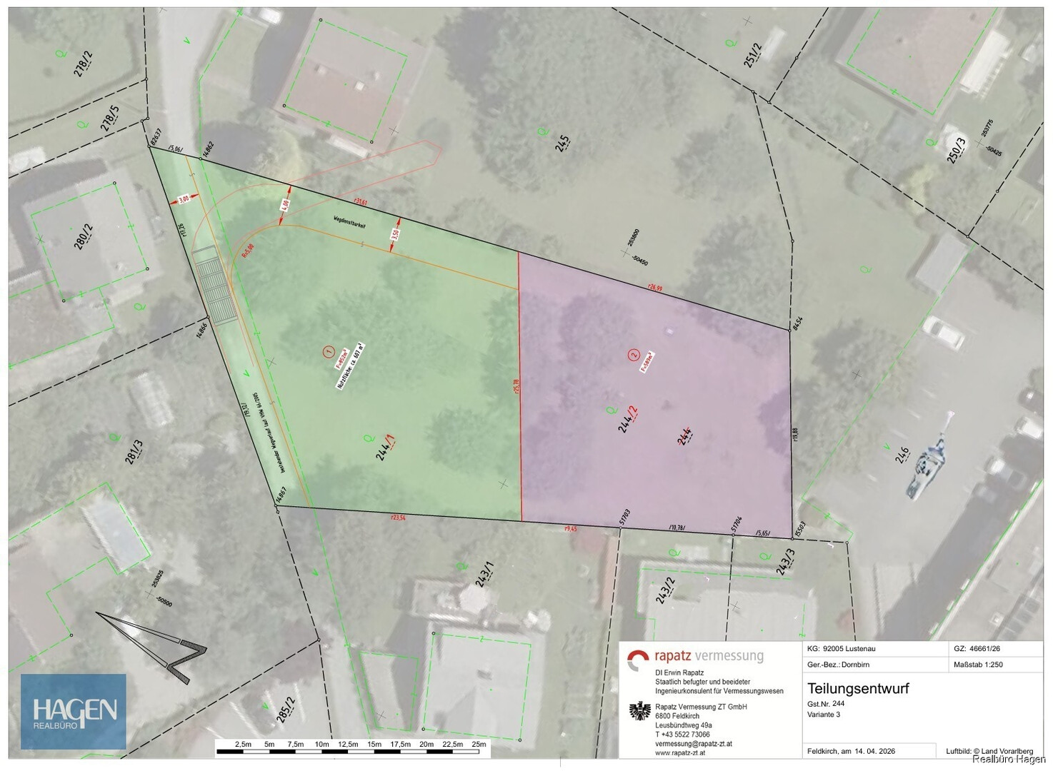 Dieses außergewöhnlich großzügige Baugrundstück mit einer Fläche von ca. 852 m² (ca. 245 m² Wegdienstbarkeit und ca. 607 m² Nutzfläche) bietet eine seltene Gelegenheit in Lustenau und überzeugt durch sein Potenzial für die Verwirklichung eines individuellen Einfamilienhauses.