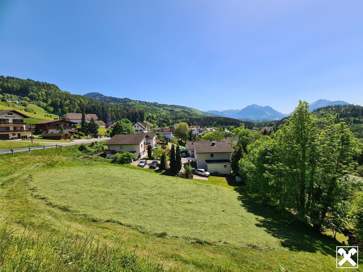 Das Hanggrundstück befindet sich im Ortsteil Batschuns der Gemeinde Zwischenwasser mit Ausblick in die umliegende Bergwelt.