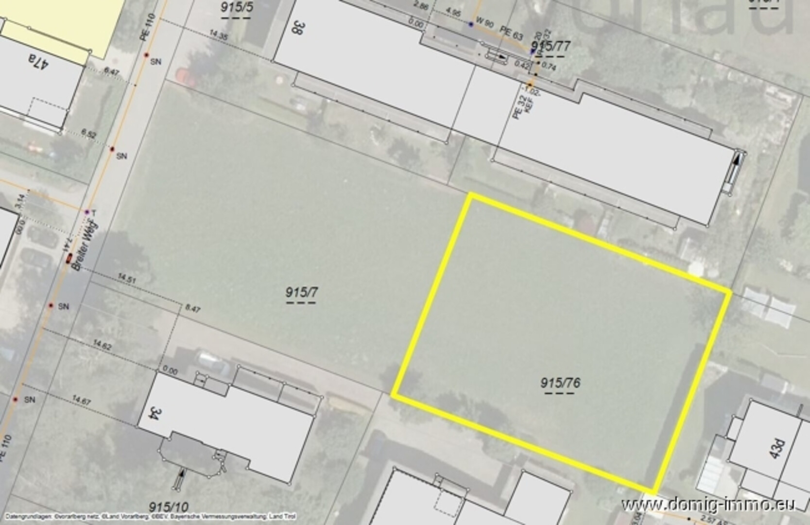 Das Grundstück mit einer Größe von ca. 854m² liegt in einer sehr ruhigen Wohnsiedlung, hat eine kurze Zufahrt (Dienstbarkeit) und ist teilerschlossen.
