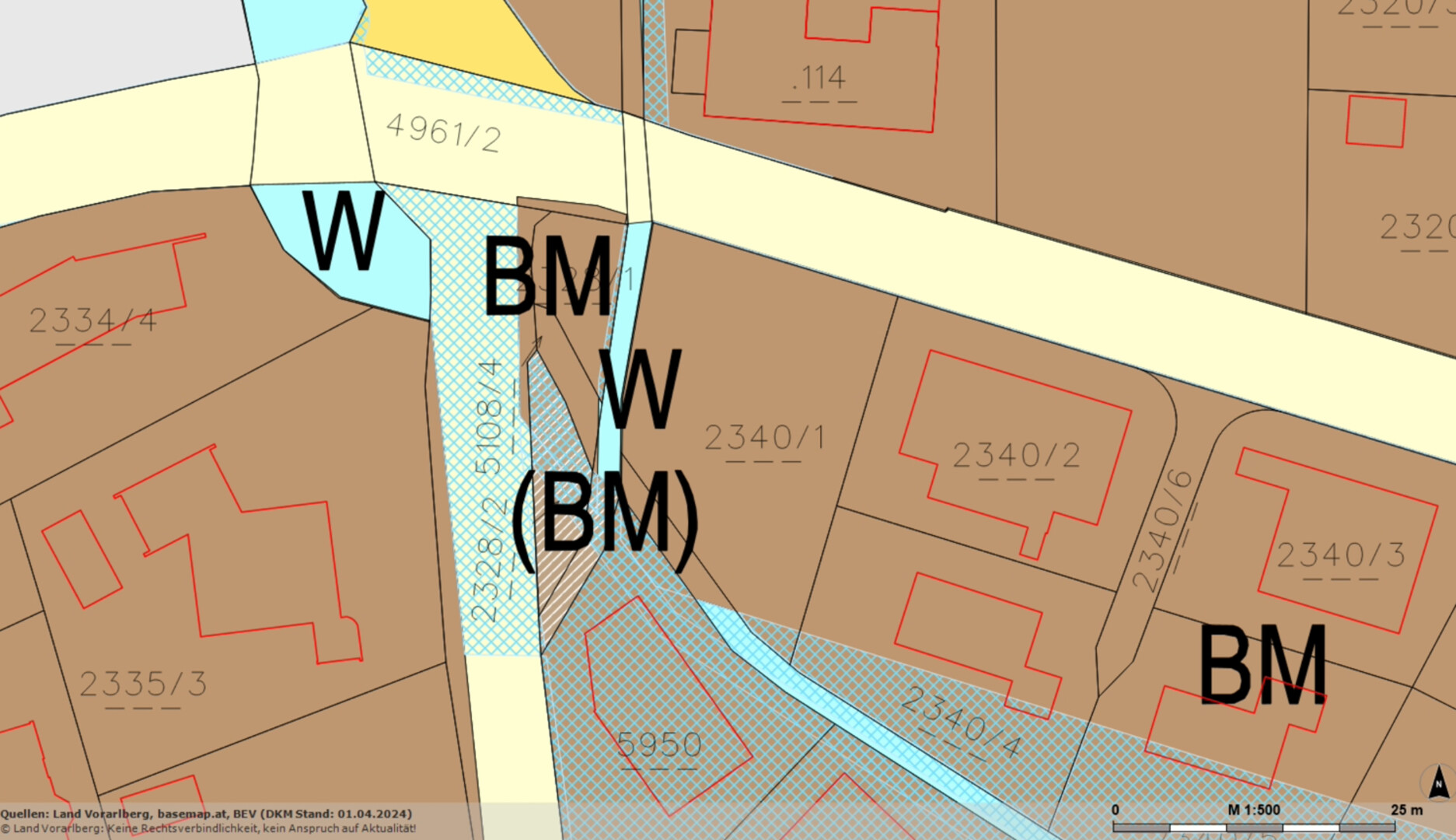 Das Grundstück ist als BM (Bau-Mischgebiet) gewidmet, was eine flexible Nutzung ermöglicht.