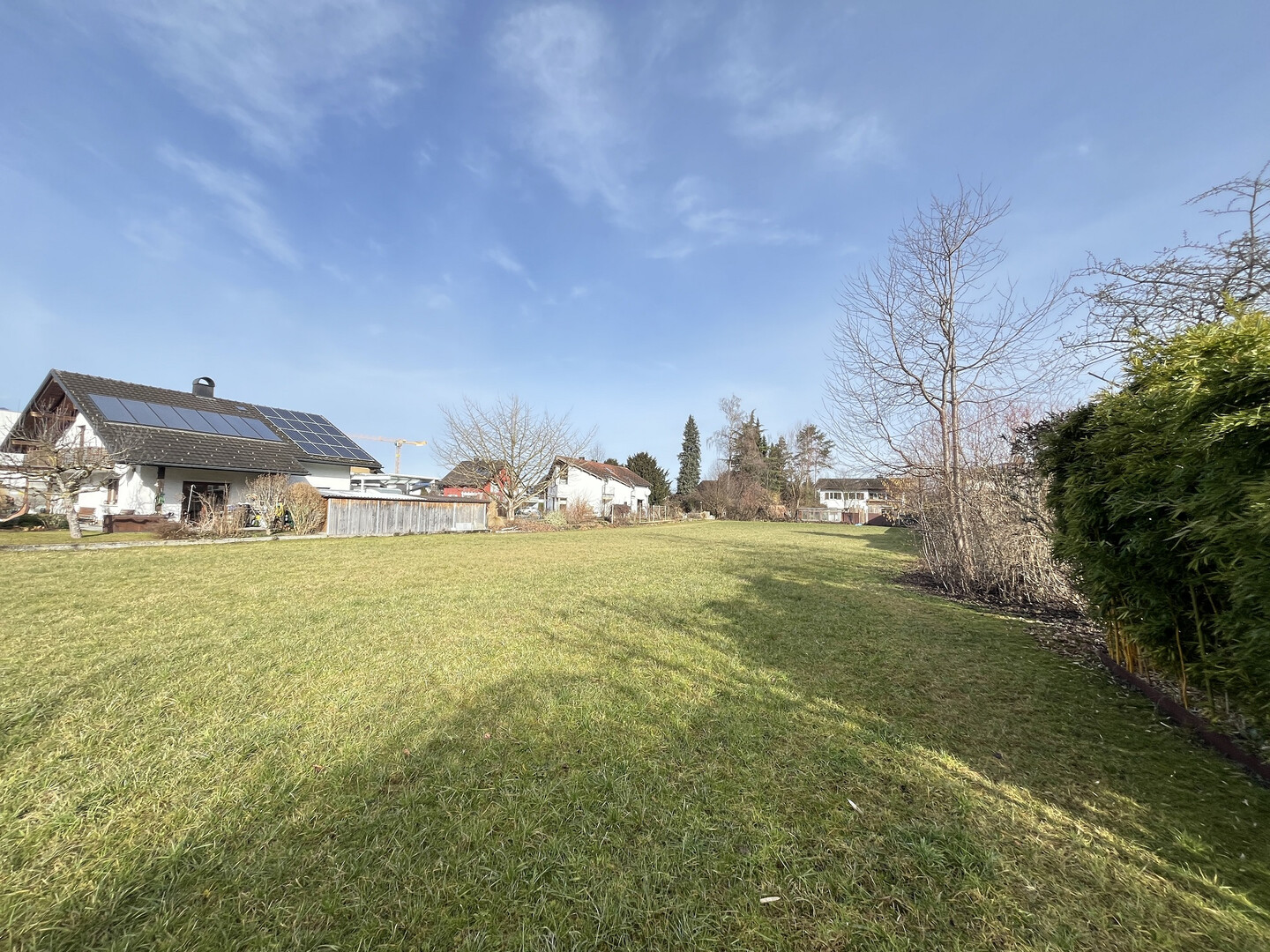 In der Umgebung befinden sich überwiegend Einfamilienhäuser. Das Grundstück liegt sonnig , ist eben und kann kurzfristig bebaut werden. Die Grundstückmaße sind ca. 24 x 26 m.