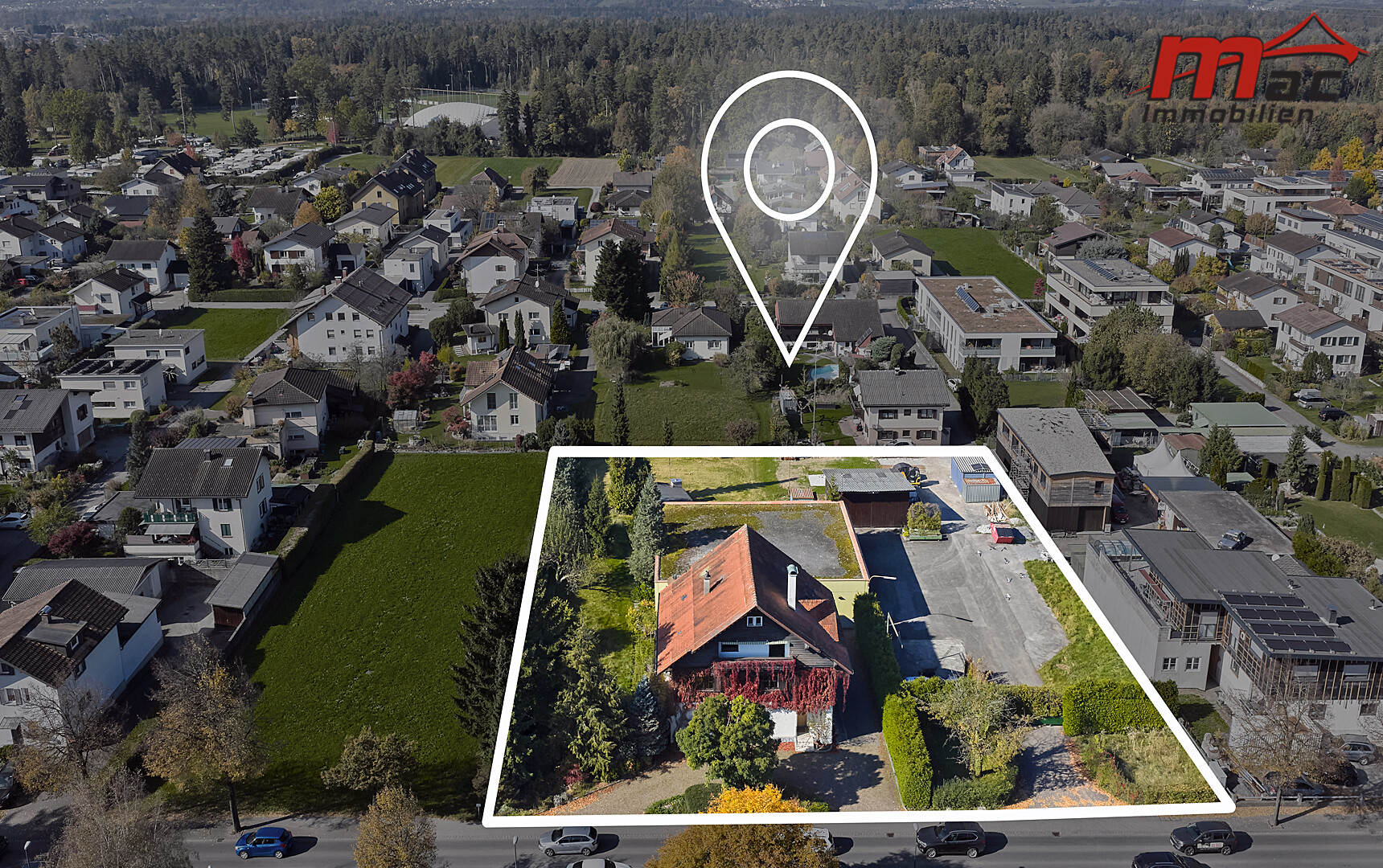 Diese Liegenschaft stellt eine einzigartige Investitionsmöglichkeit in einer stark nachgefragten Wohnregion dar – sei es zur Projektentwicklung oder zur Kombination von Wohn- und Gewerbenutzung.