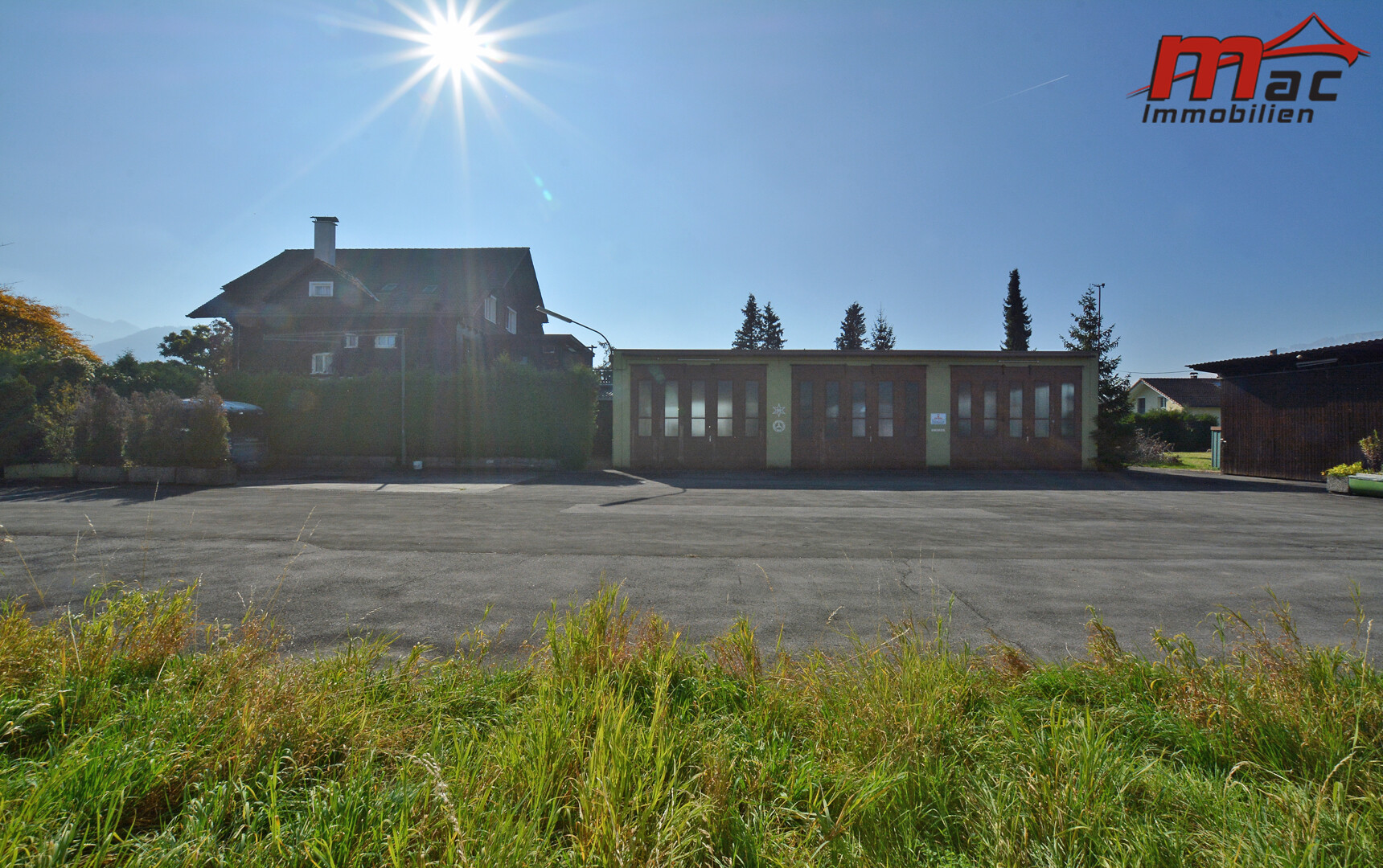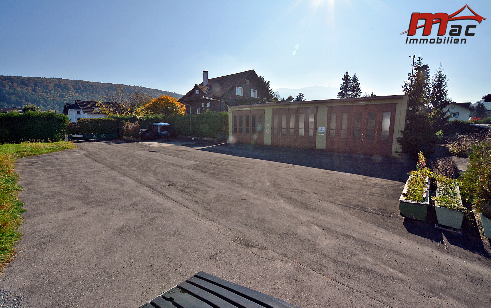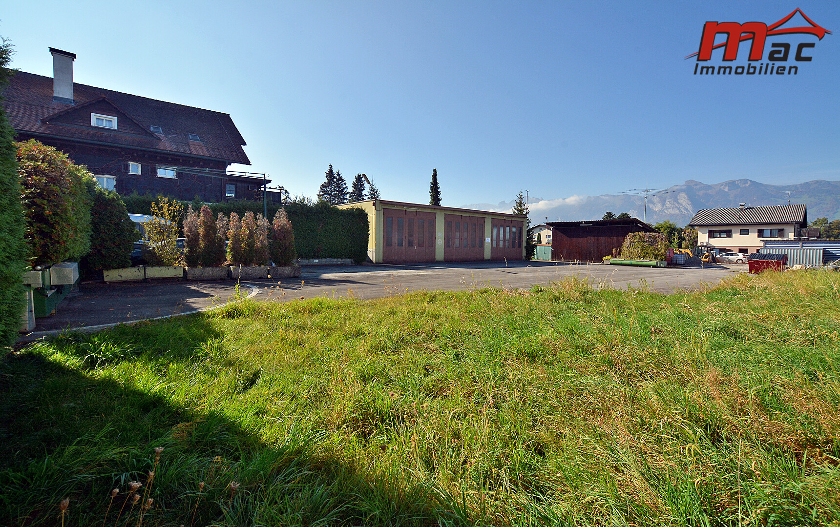 Gleichzeitig bietet das Grundstück eine sonnige Lage mit wunderschöner Fernsicht in die umliegende Bergwelt.