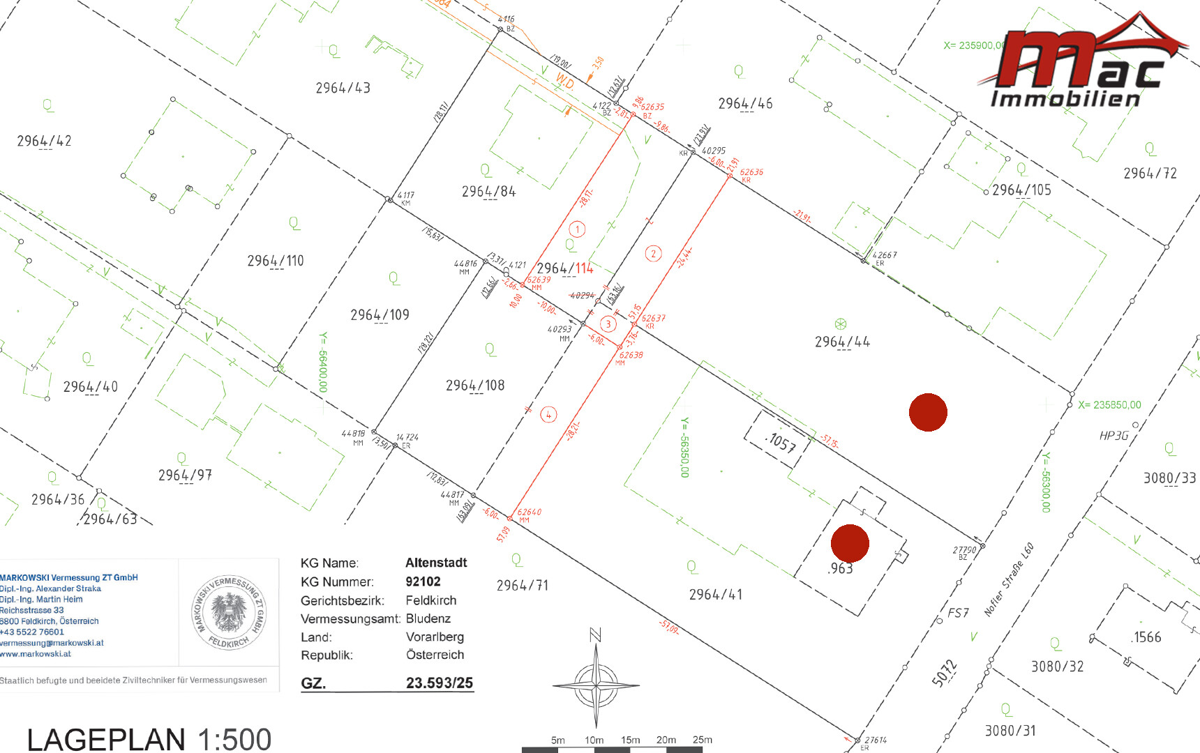 Die ebene und optimal geschnittene Liegenschaft besticht durch eine perfekte Ausrichtung mit einer Seitenlänge von ca. 57 m x 57 m.