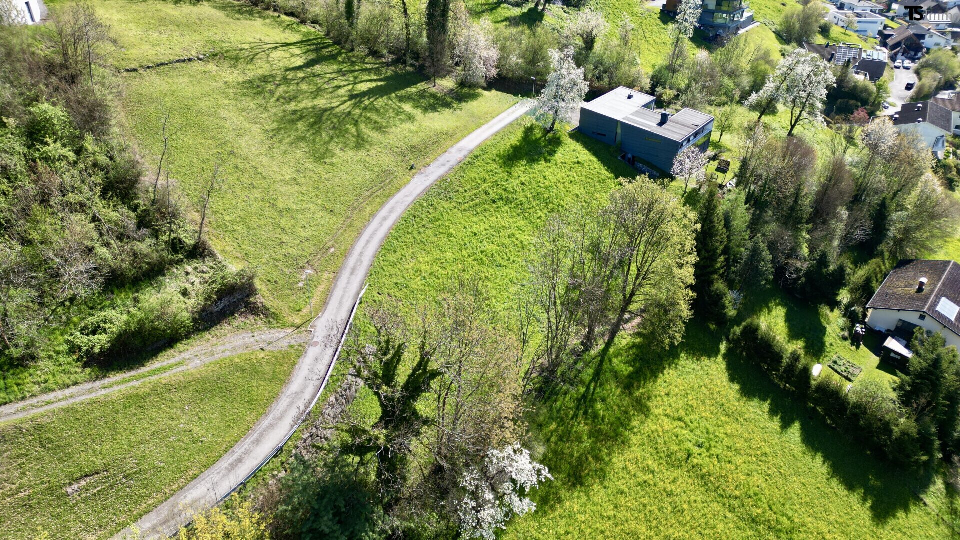 Die bereits vorhandene Zufahrt oberhalb des Grundstücks ermöglicht innovative Architekturkonzepte – etwa Wohnen auf mehreren Ebenen mit Eingang oben und großzügigen Terrassen- und Gartenflächen darunter.