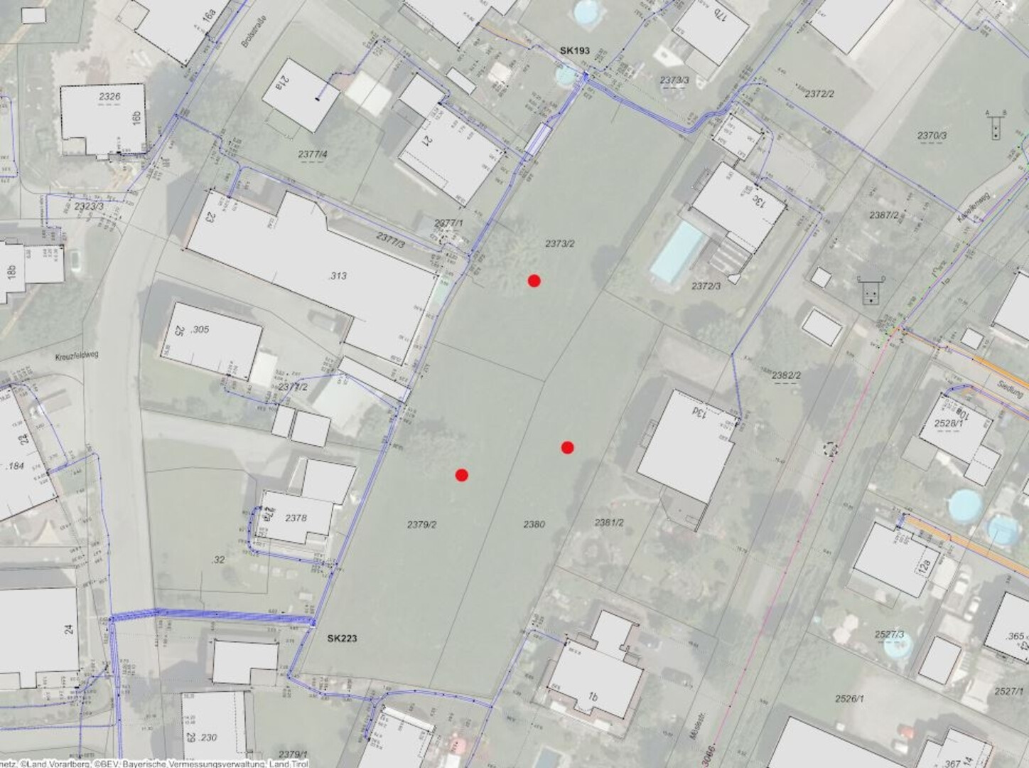 • Grundstückseinheiten: 3 aneinanderliegende Grundstücke (2373/2, 2379/2 und 2380)