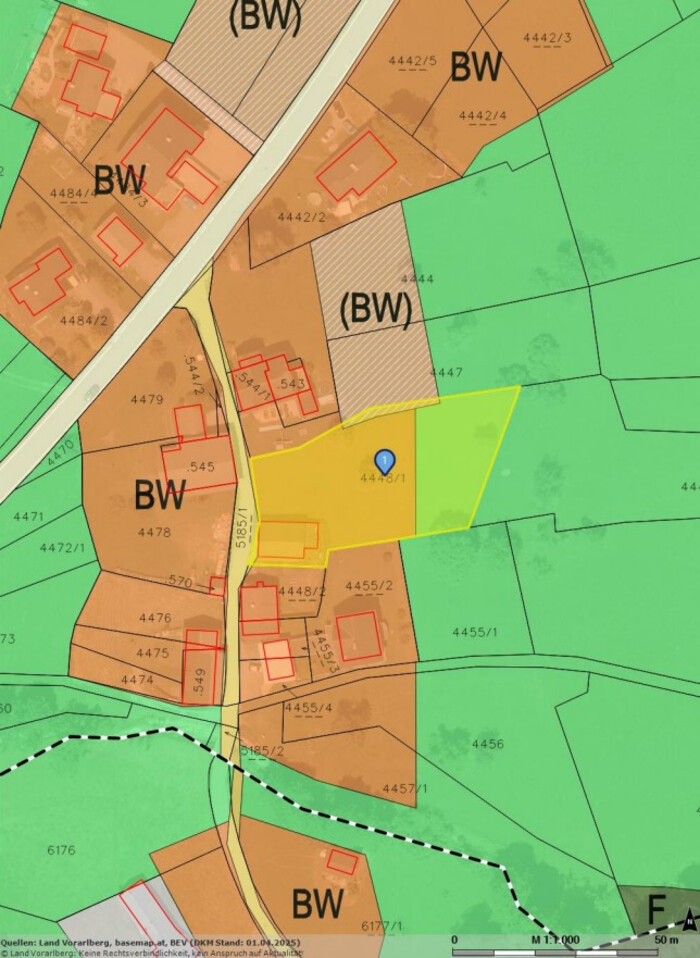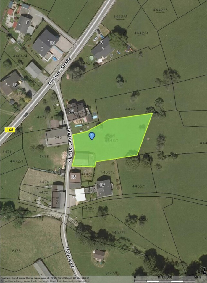 Da sich das Grundstück laut Grundbuchsauszug im Grundsteuerkataster befindet, kann die tatsächliche Grundstückfläche von jener Flächenangabe im Grundbuch abweichen.