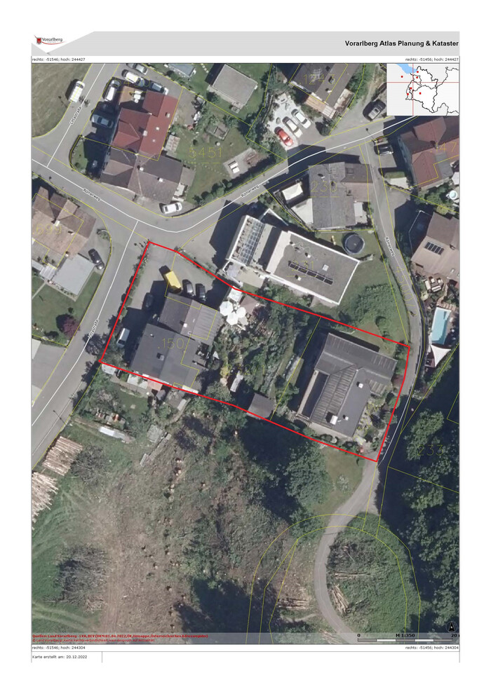 Die bebauten Liegenschaften GST-Nr.: 232/1, .150 und 232/2, mit einer Größe von 1526 m², befinden sich in exklusiver Lage, in der Anhöhe von Götzis. Diese sind voll erschlossen und die Zufahrt zu den Liegenschaften ist von zwei Seiten gegeben.