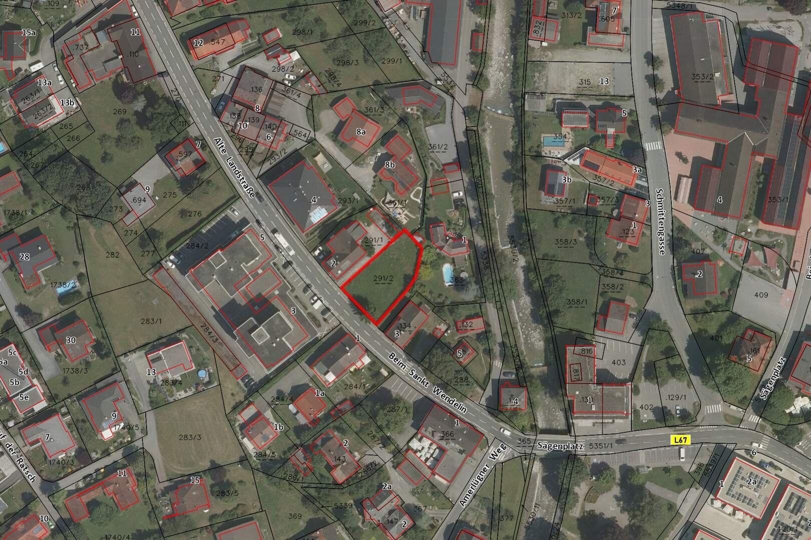 Das Grundstück liegt in Frastanz, Österreich, in der Region Vorarlberger Rheintal. Es ist eine Wohngegend mit guter Anbindung an die Stadt Feldkirch. Die Umgebung eignet sich gut für Outdoor-Aktivitäten wie Wandern und Radfahren.