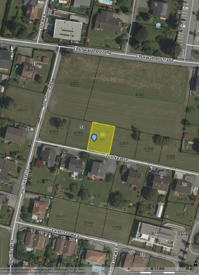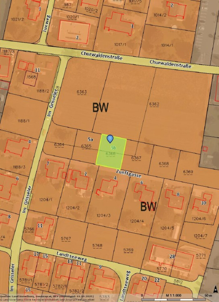 Dieses ideal geschnittene Baugrundstück ist lt. VOGIS vollständig als Bauwohngebiet gewidmet und weist lt. Grundbuch eine Größe von 464 m² auf.