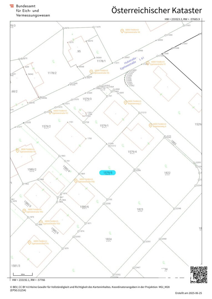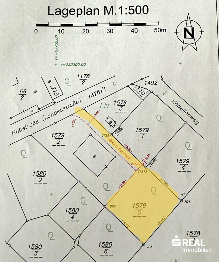 Die Grenzen sind bereits rechtsverbindlich festgelegt da sich die Grundstückseigentümer oder ihre Vorgänger im Zuge einer Grenzverhandlung auf einen Grenzverlauf geeinigt haben. Die Zufahrt zum Grundstück in 2. Baureihe ist über eine im Grundbuch eingetragene Grunddienstbarkeit des Geh- und Fahrrechtes von der Egelseestraße (bei der Kapelle Mariahilf) her geregelt.