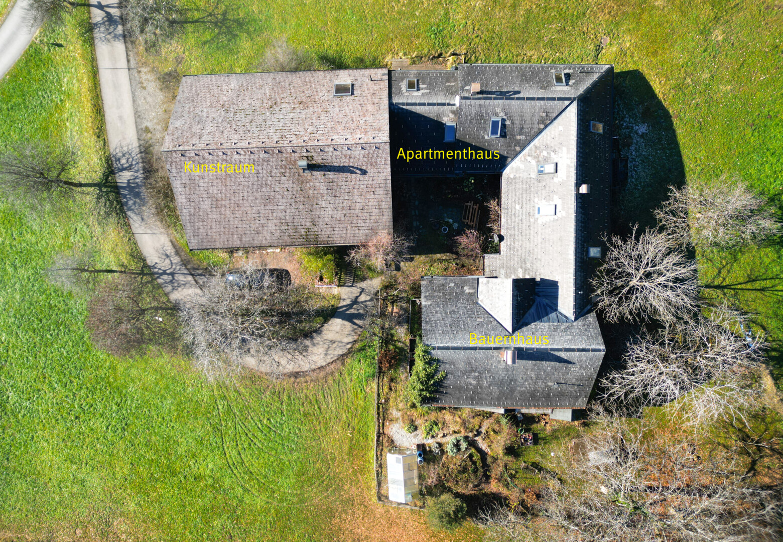 vier Apartments und einem als Kunstwerkstätte und Seminarraum genutzten modernen Anbau