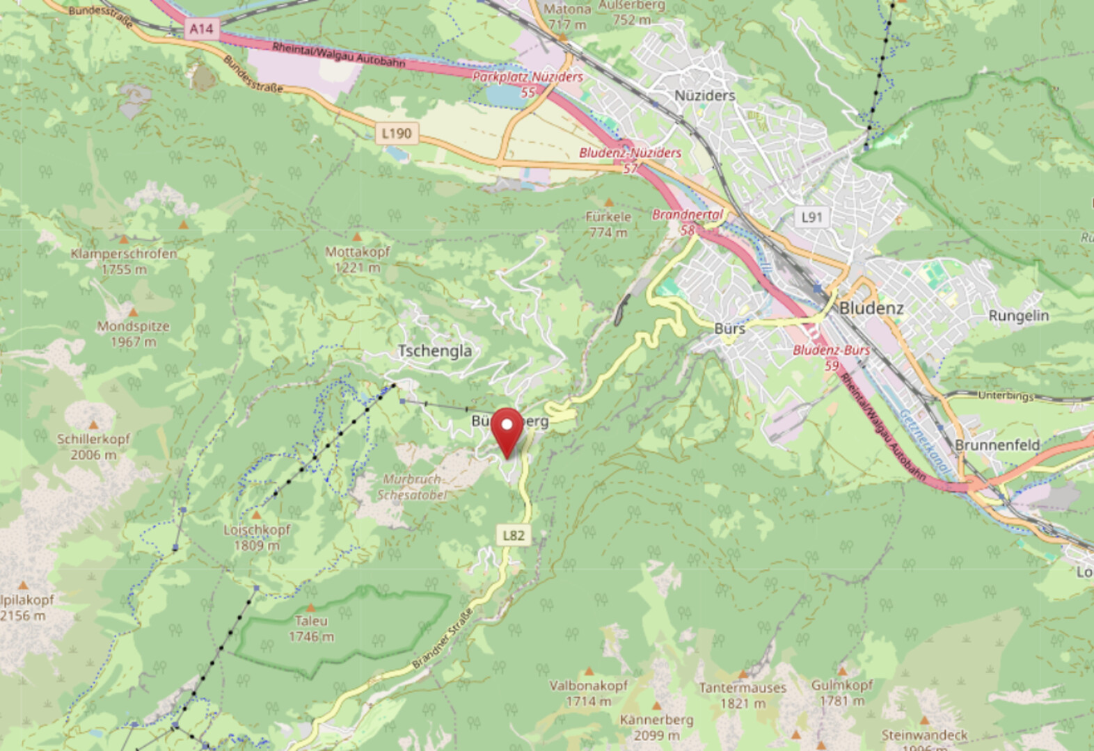 Das Grundstück mit Altbestand befindet sich in einer sehr zentralen und ruhigen Wohnlage am Bürserberg und bietet Privatsphäre und eine gute Anbindung an das Ortszentrum sowie an die Skigebiete des Brandnertals. Die Bergbahnen Brandnertal bieten insgesamt 64,4 Pistenkilometer, 3 Talabfahrten und moderne Liftanlagen – ideale Voraussetzungen für Wintersportler. Oberhalb von Bürserberg liegt das Tschengla-Hochplateau, das neben einer Panoramaloipe und Winterwanderwegen auch den Bikepark Brandnertal und zahlreiche Wandermöglichkeiten bietet.