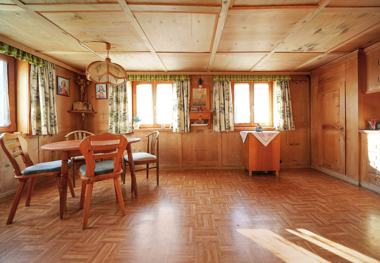 - erhaltene Stube und Zimmer mit traditioneller Holzvertäfelung