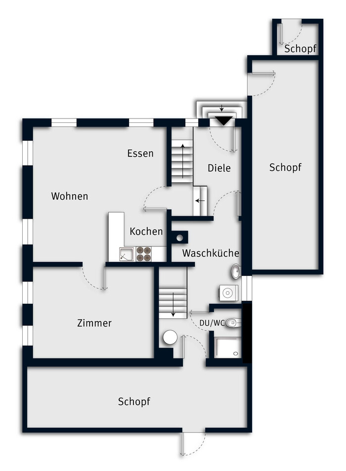 - 45 m² flexibel nutzbare Schopfe als zusätzlicher Stauraum