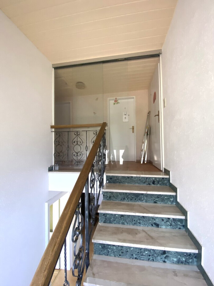 Das gepflegte Haus besticht durch seine durchdachte Raumaufteilung mit insgesamt sieben Zimmern, die vielfältige Nutzungsmöglichkeiten ermöglichen – sei es als Schlafzimmer, Arbeitszimmer oder Gästezimmer. Besonders hervorzuheben ist der herrliche Fernblick, den Sie von Ihrem Südbalkon oder der großzügigen Südterrasse genießen können. Hier laden sonnige Stunden zum Verweilen und Genießen ein.