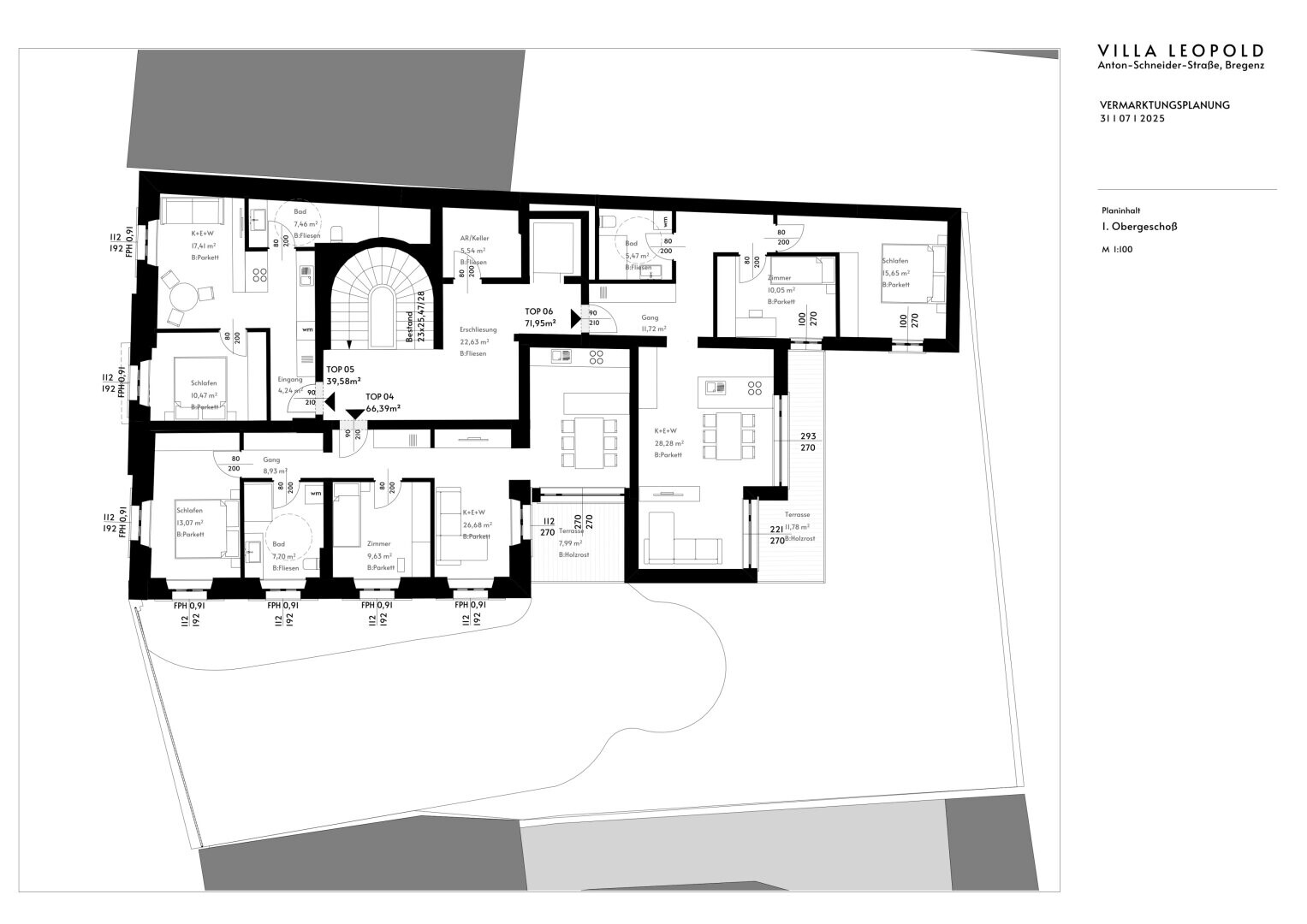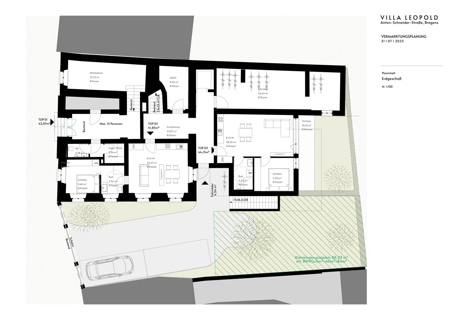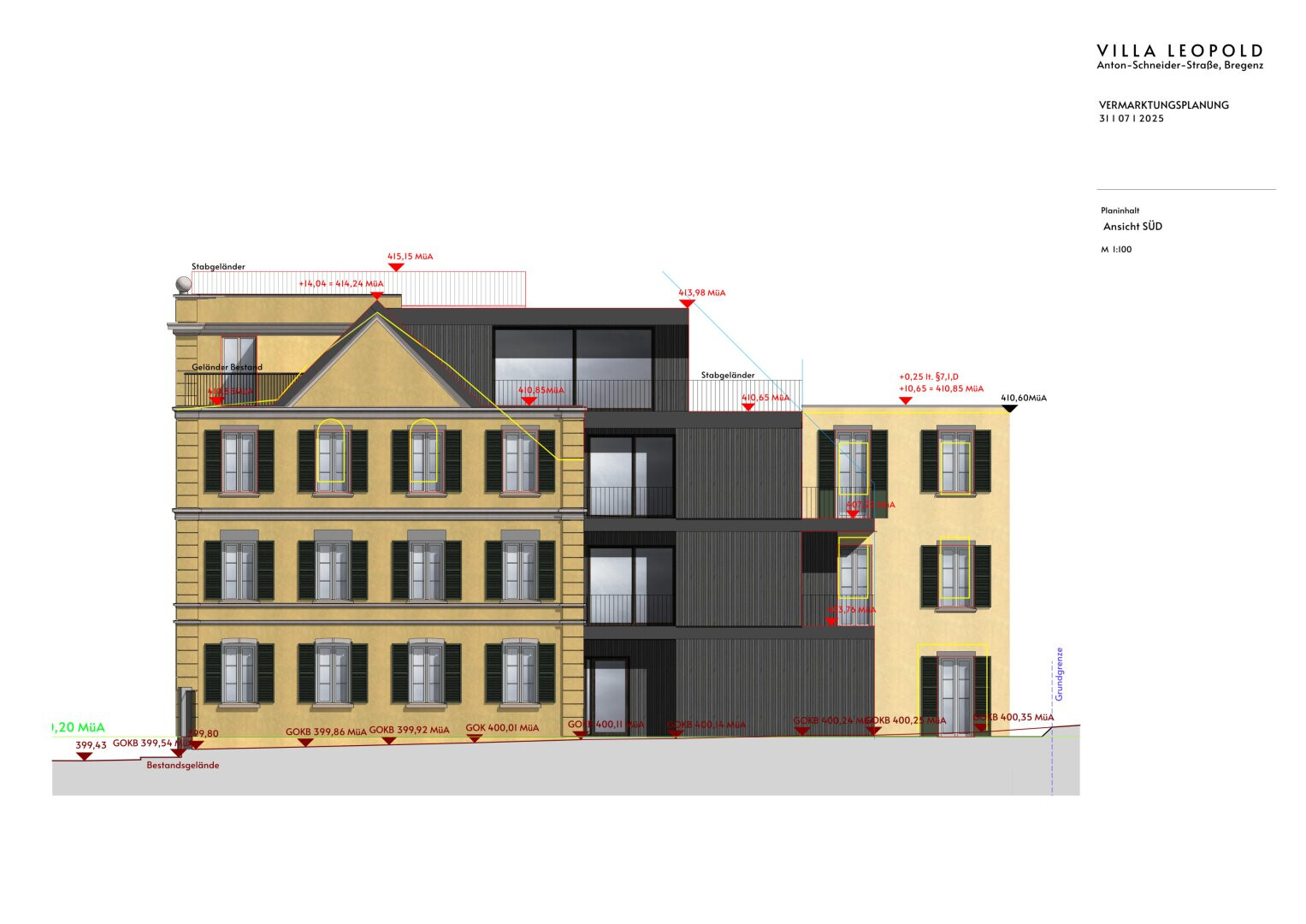 Potenzial liegt in der bereits mit der Stadt besprochenen Planung für den Um- und Ausbau der Liegenschaft. Mit dieser Planung kann die Nutzfläche von 593 m² reine Wohnfläche erweitert werden, und zusätzlich gibt es über 167 m² Terrassen, sowie Gartenflächen im EG und DG die genutzt werden können. Die Liegenschaft wird bestandsfrei und samt entsprechender Baugenehmigung veräußert.