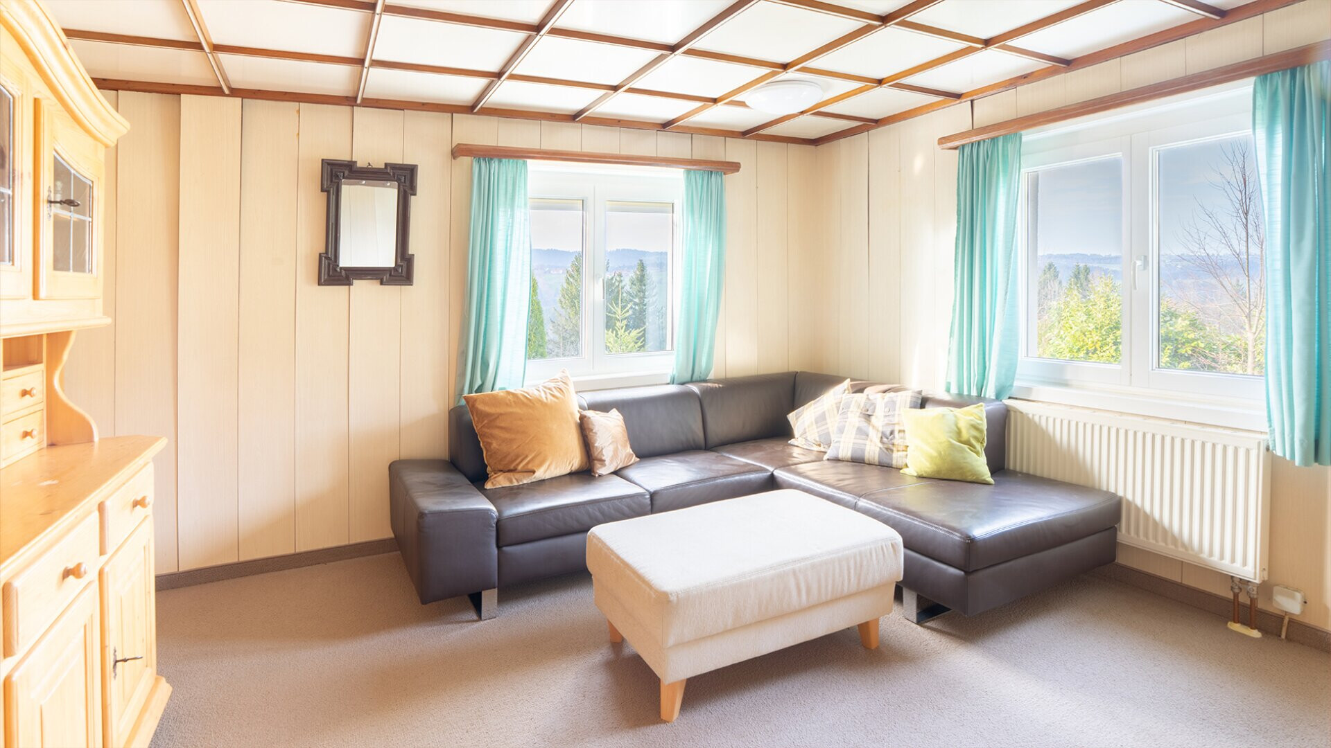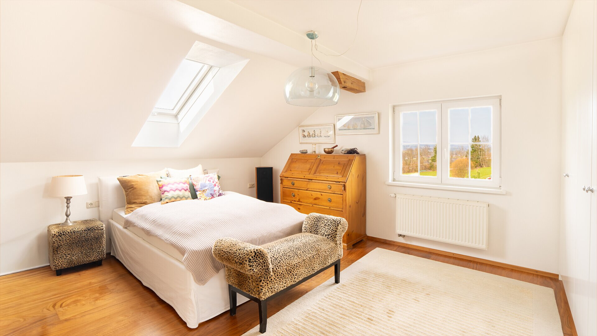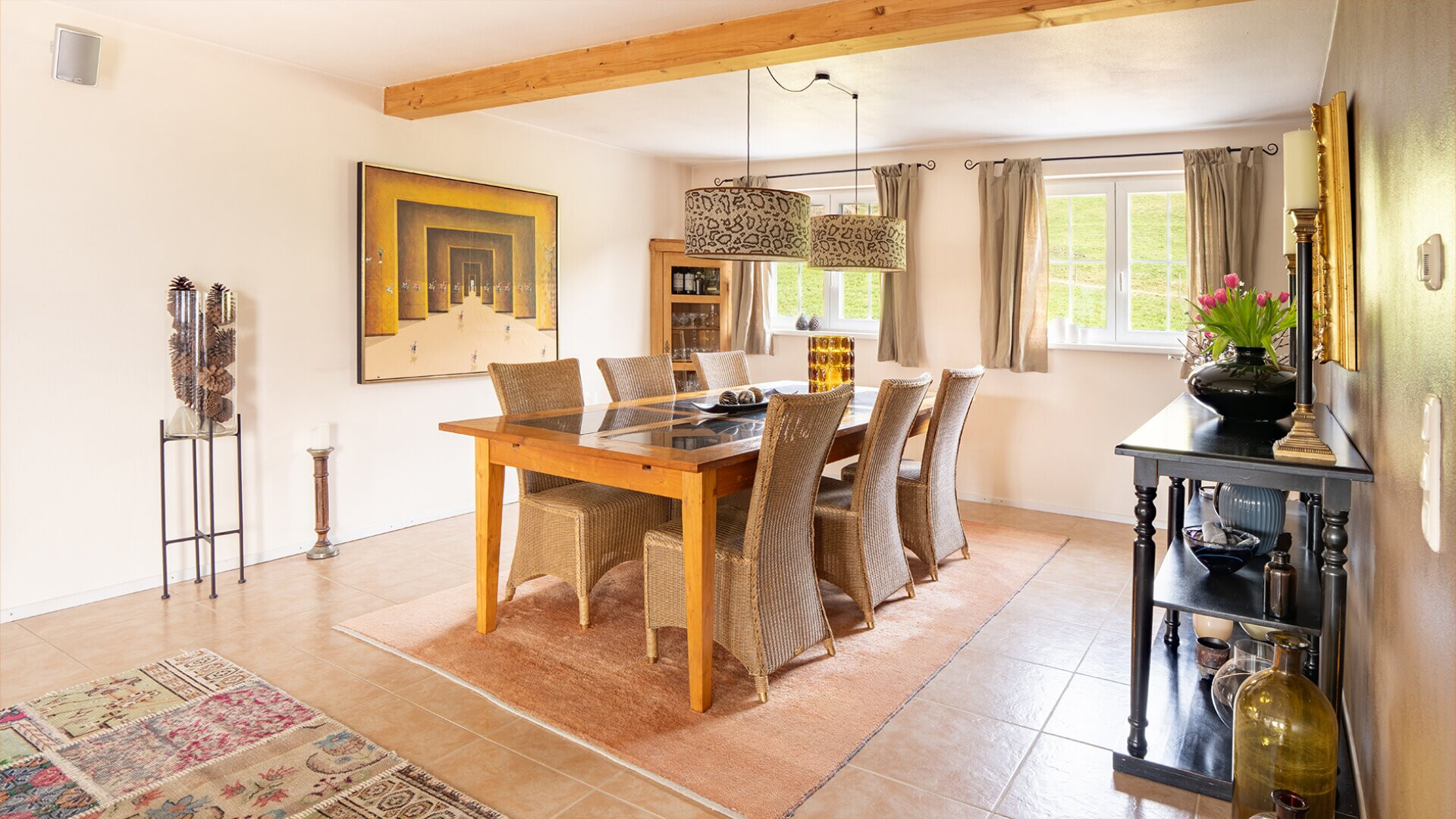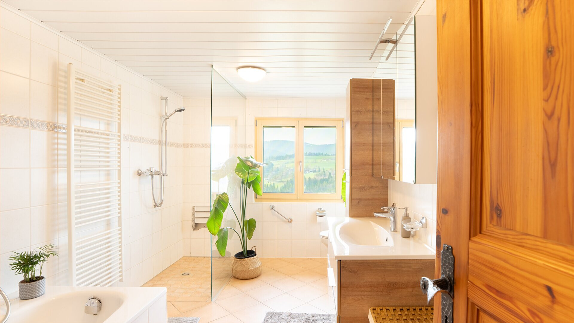 Die erhöhte Lage sorgt für eine schöne Aussicht über die Landschaft. An klaren Tagen reicht der Blick bis zum Säntis und unterstreicht die besondere Lage dieses Standortes.
