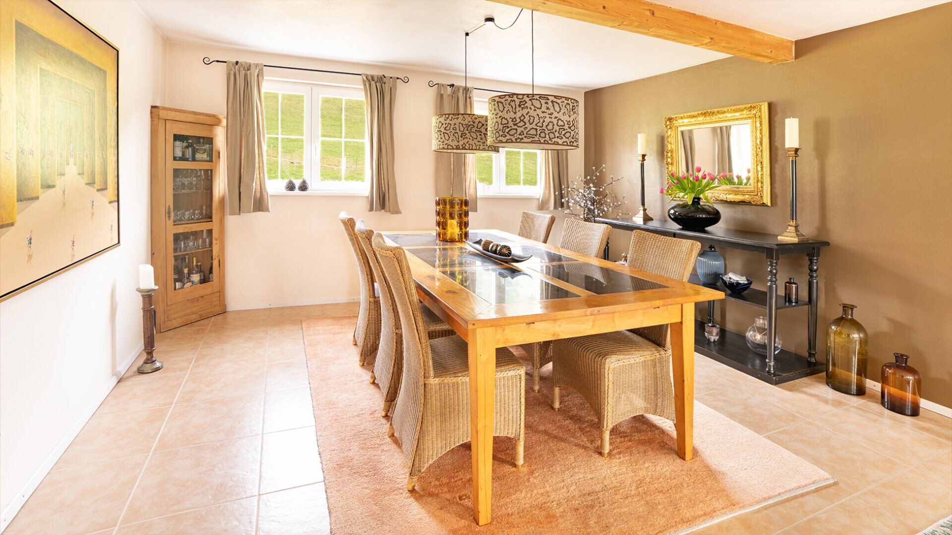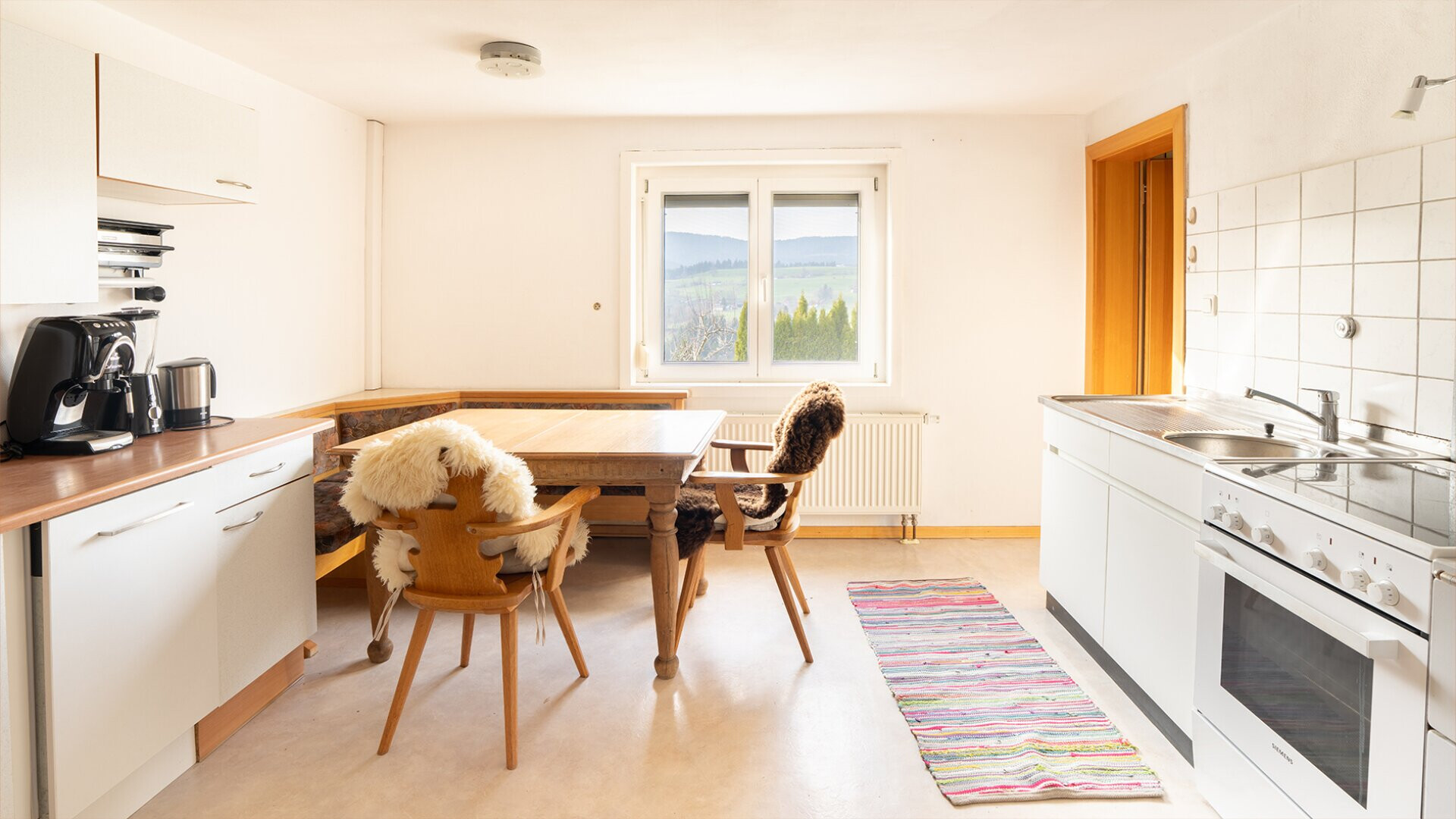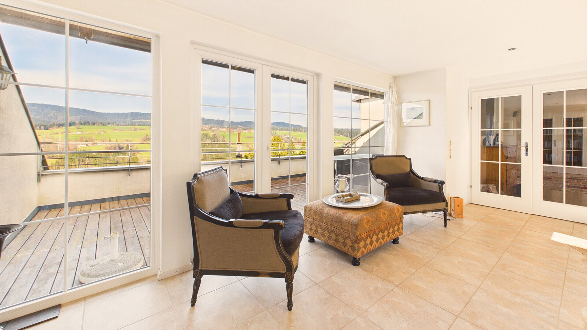 Die Liegenschaft befindet sich in besonders ruhiger Lage ohne direkte Nachbarn. Die umliegenden Wiesen und Freiflächen schaffen ein hohes Maß an Privatsphäre. Der freie Blick über die Landschaft bis hin zum Säntis unterstreicht die Qualität dieses Standorts und macht das Anwesen zu einem Rückzugsort mit besonderem Charakter.